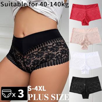 3PCS Women Lingerie Panties Sexy Lace Cheeky Plus Size High-waist Panties Female Briefs Ladies Seamless Breathable Underwear