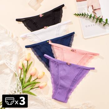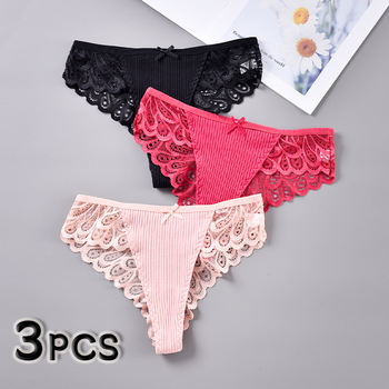 3PCS Sexy Thongs Bikini Panties Cotton Women Lace Lingerie G-string Low Waist Briefs Women Underwear Ladies T-Back Thong Tangas