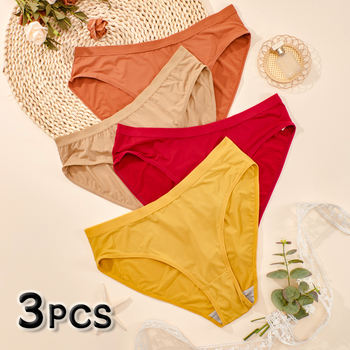 3PCS Solid Color Cotton Female Lingerie Breathable Comfortable Women’s Underwear Skin-friendly Comfortable Soft Women’s Panties