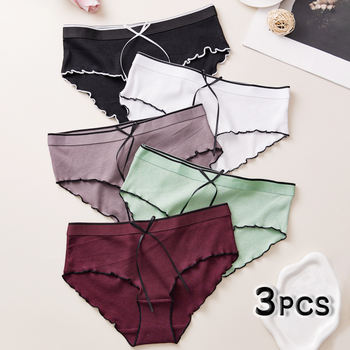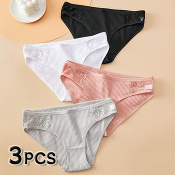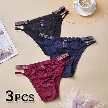 3pcs Women’s Lace Panties Sexy Plus Size Underwear Fashion Lingerie Cotton G-string Letter Thong Low Waist Briefs Soft Intimates