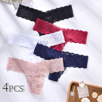 4PCS Lace Women’s Sexy Thong Silky Soft Women’s Panties Winter Home Breathable Comfortable Women’s Underwear Seamless G-string
