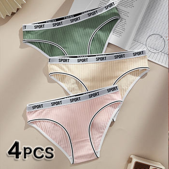 4PCS Cotton Mid Waist Women’s Panties Sexy Breathable Skin Friendly Women’s Underwear Seamless Soft Female Solid Color Lingerie