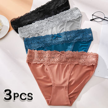3PCS Mid-waist Lace Sexy Solid Color Women’s Panties Silky Soft Women’s Underwear Skin-friendly Breathable Comfortable Feminine