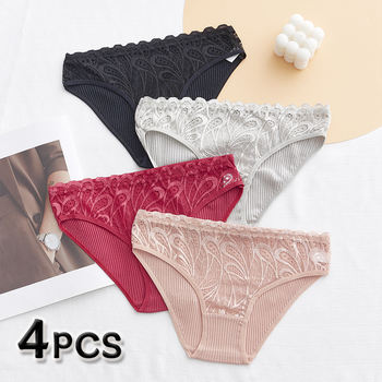 3/6pcs Floral Lace Panties Plus Size Women Underwear Transparent Sexy Lingerie Seamless Pantys Low-waist Female Briefs Intimates