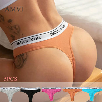 5PCS women’s panties cotton thongs sexy bikini g-String solid color seamless intimate female underpants letter waist lingerie