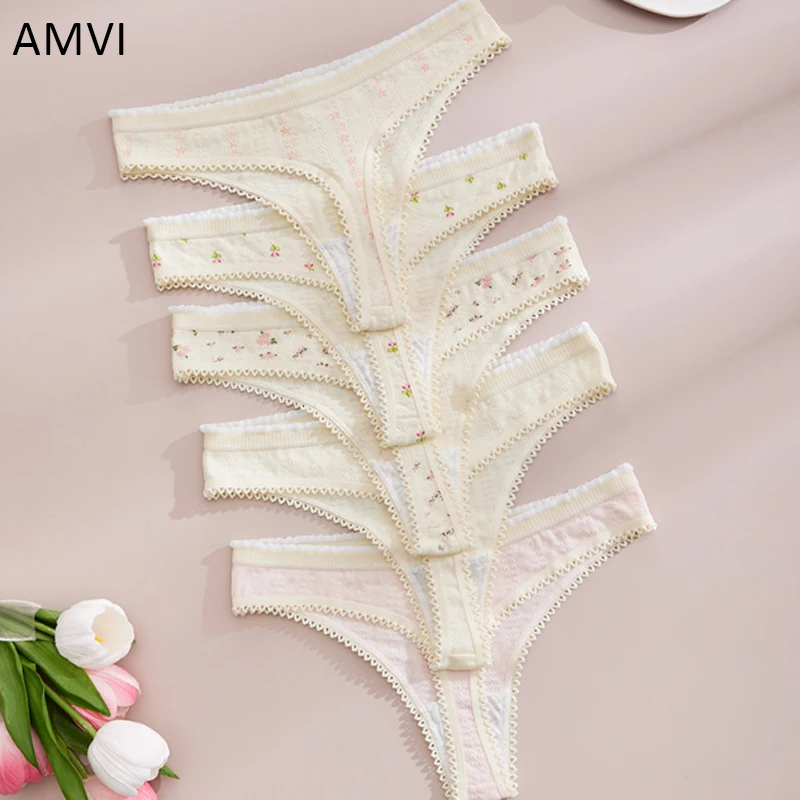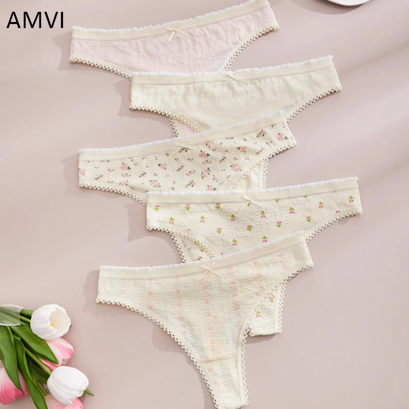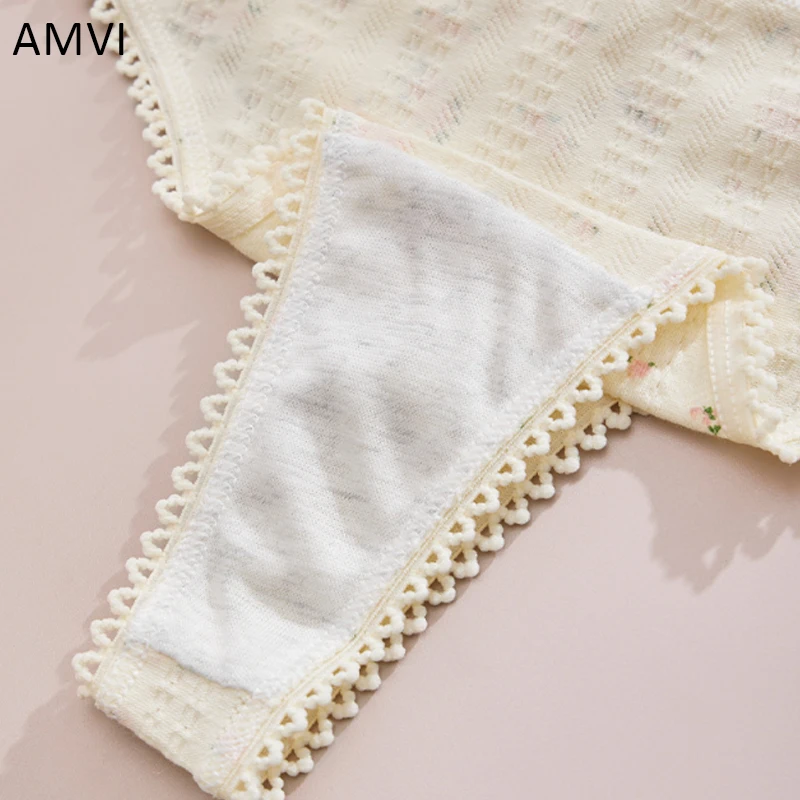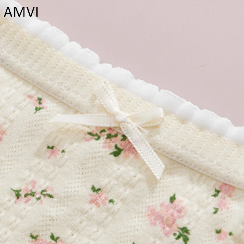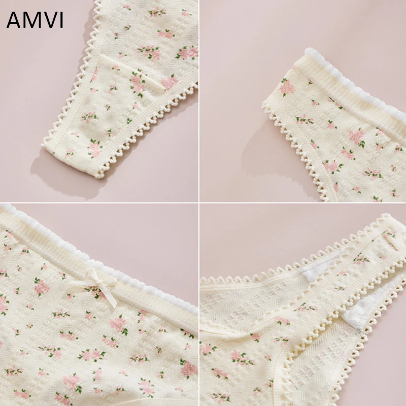 AMVI Underpants Women’s Cotton Crotch Breathable Traceless Mid Waist Triangle Pants Girls Triangle Pants Cute Style