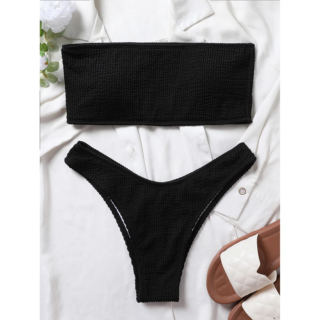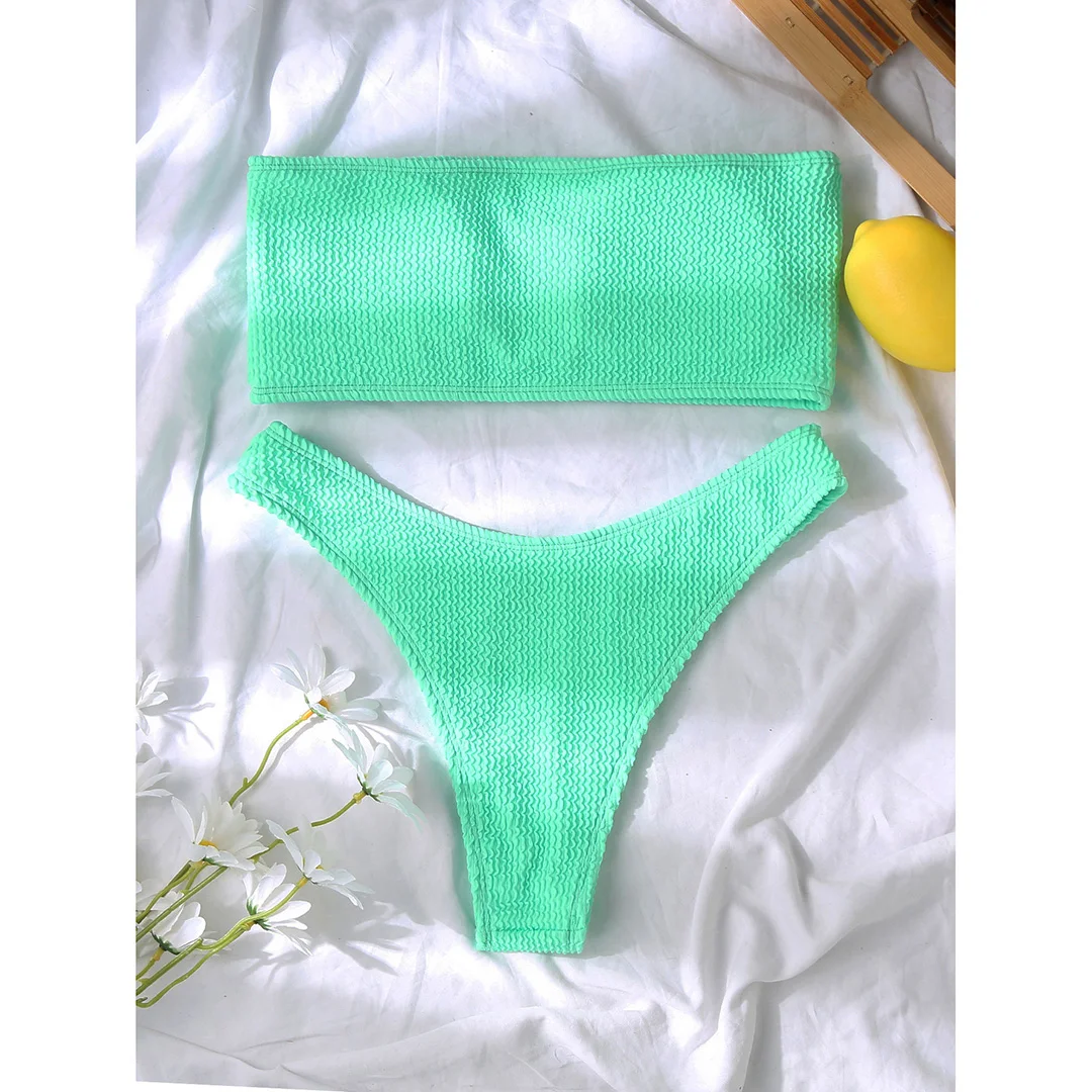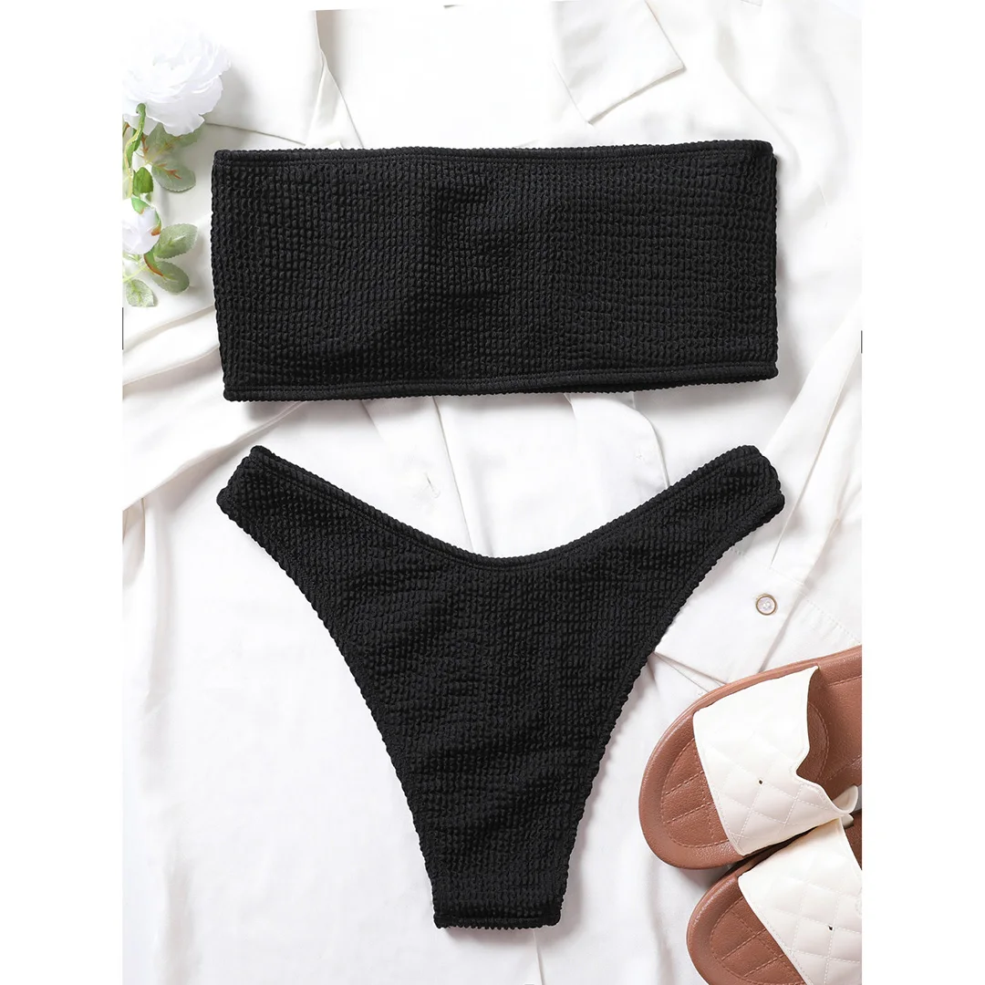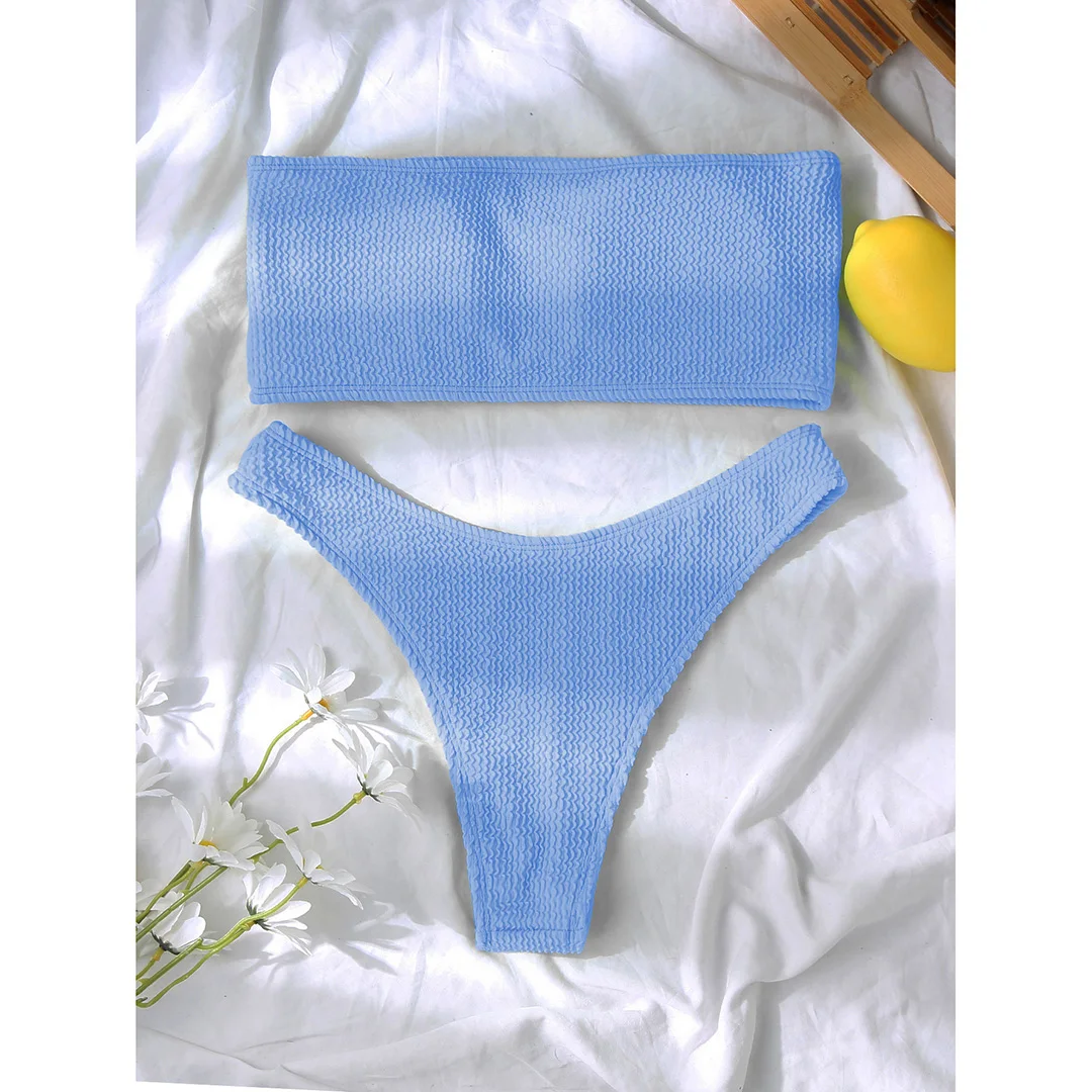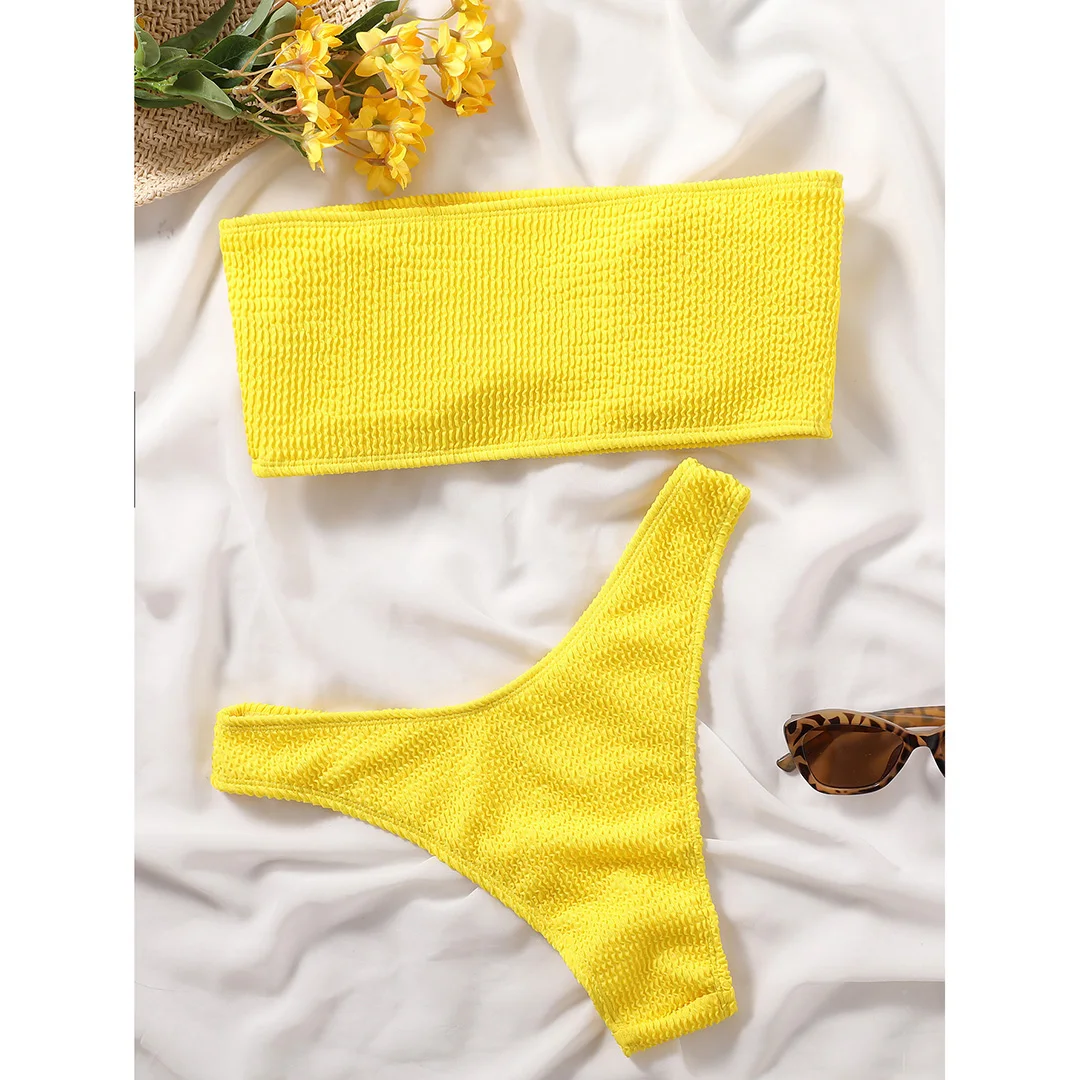 Bandeau Strapless Wrinkled Crinkled Bikini Women Swimwear Female Swimsuit Two-pieces Bikini set Bather Bathing Suit Swim V3314B