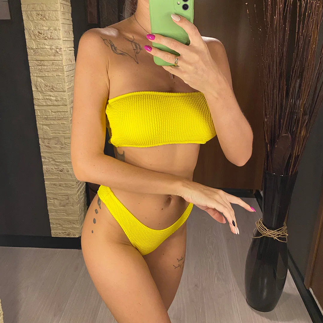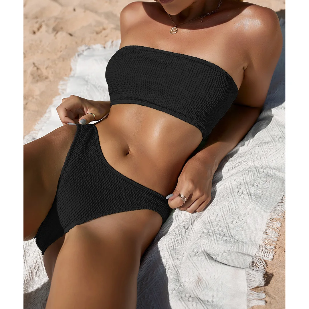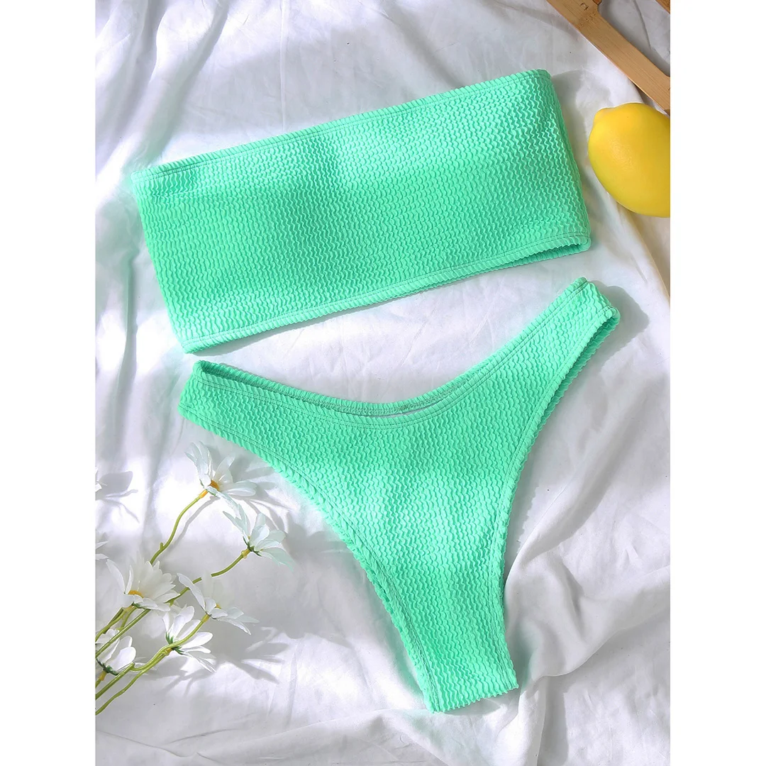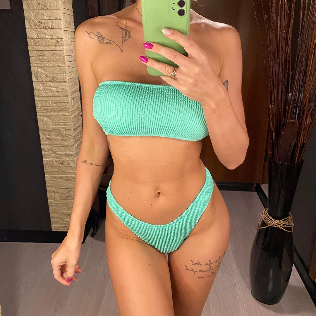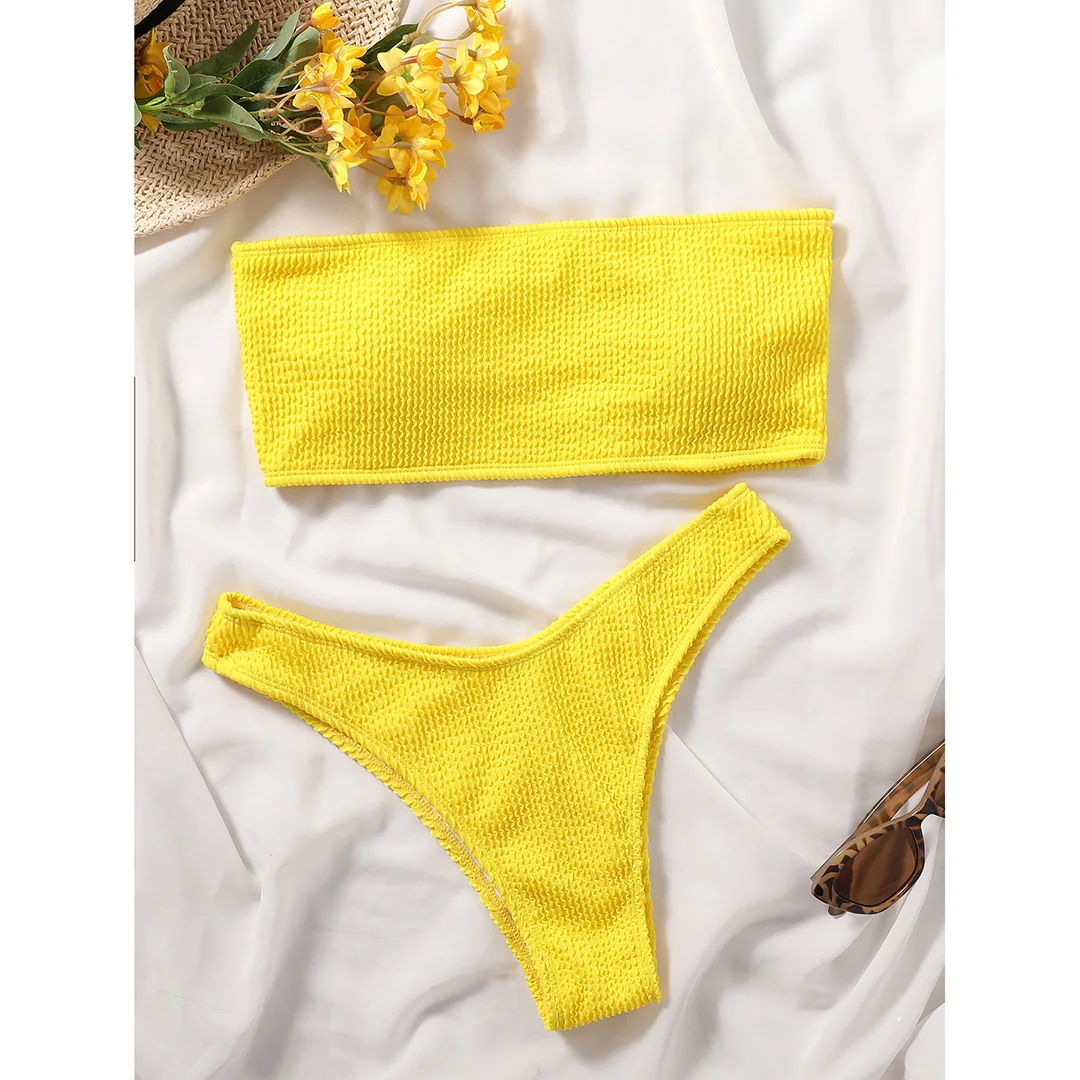 Bandeau Strapless Wrinkled Crinkled Bikini Women Swimwear Female Swimsuit Two-pieces Bikini set Bather Bathing Suit Swim V3314B