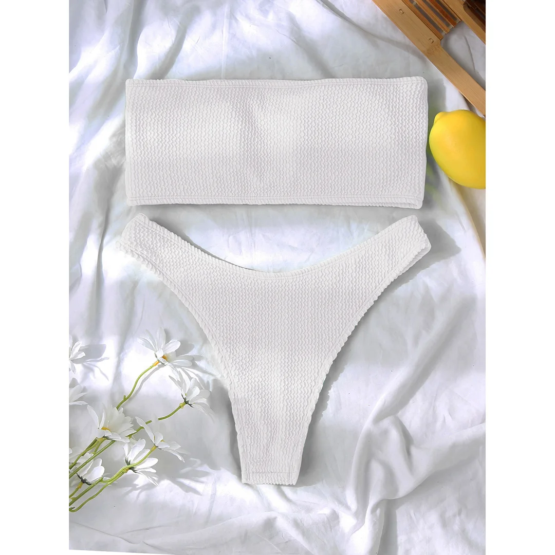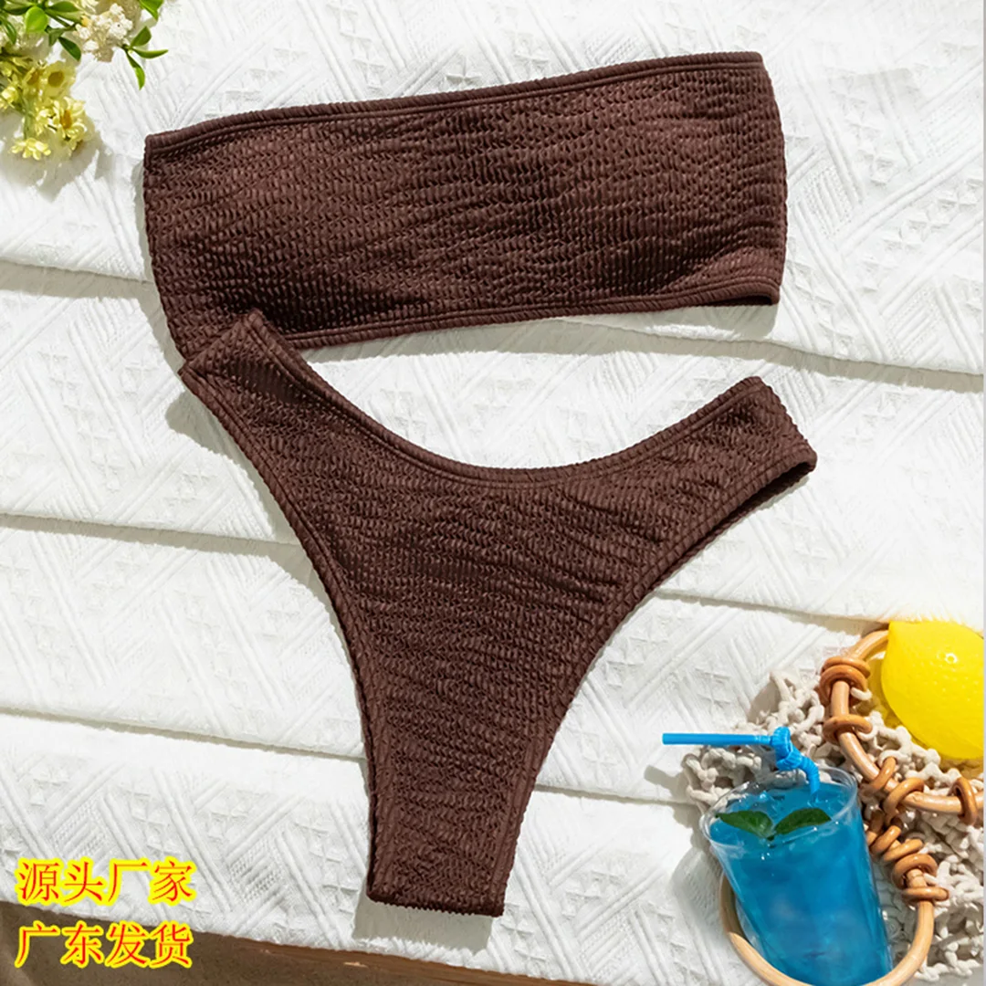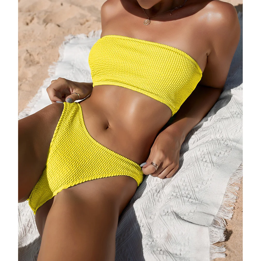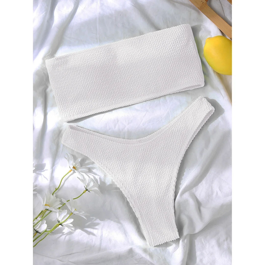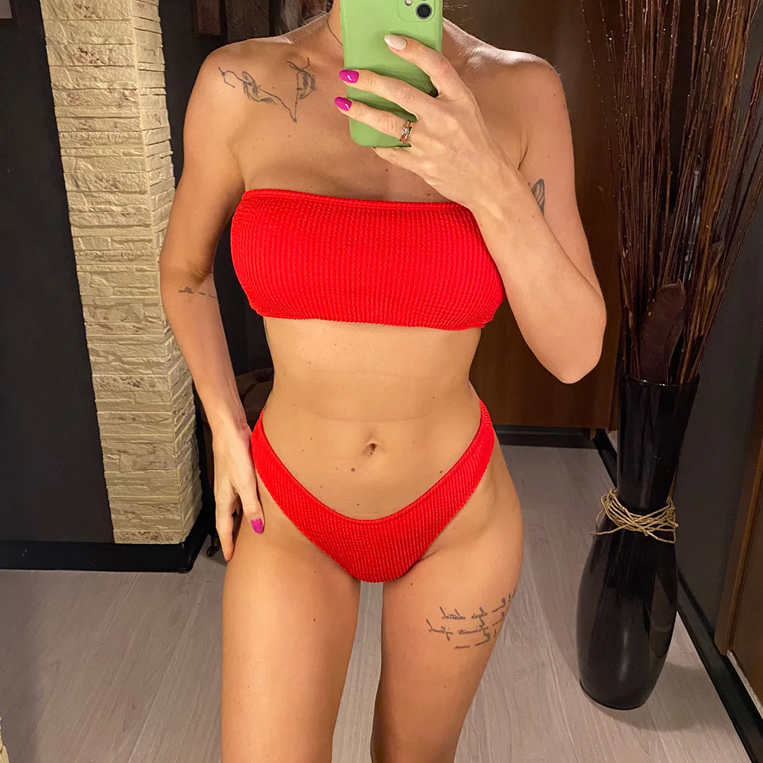 Bandeau Strapless Wrinkled Crinkled Bikini Women Swimwear Female Swimsuit Two-pieces Bikini set Bather Bathing Suit Swim V3314B