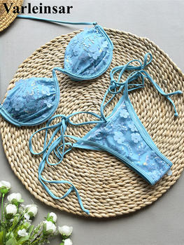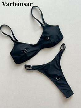 Metal Ring Mini Micro Thong Bikini Women Swimwear Female Swimsuit Two-pieces Bikini set Padded Bather Bathing Suit Swim V7513