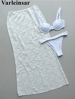 S – XL With Skirt Brazilian Bikini Female Swimsuit Women Swimwear Three-pieces Bikini set Padded Bather Bathing Suit Swim V6635