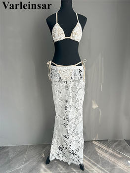 With Mesh Skirt White Pearl Luxury Bikini Female Swimsuit Women Swimwear Three-pieces Bikini set Bather Bathing Suit Swim V6423