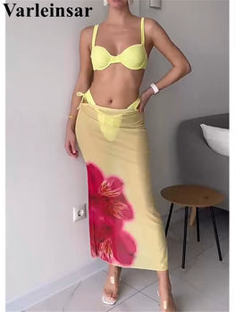 3PCS With Printed Skirt Underwired Bikini Female Swimsuit Women Swimwear Three-pieces Bikini set Bather Bathing Suit Swim V6435