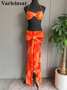 Printed With Skirt Halter Bikini Female Swimsuit Women Swimwear Two-pieces Bikini set Underwired Bather Bathing Suit Swim V6585