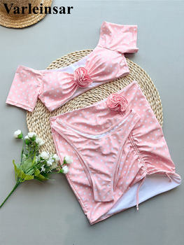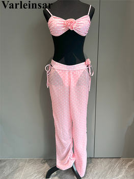 3D Flowers Dots With Pants Bikini Women Swimwear Female Swimsuit Three-pieces Bikini set Padded Bather Bathing Suit Swim V6891