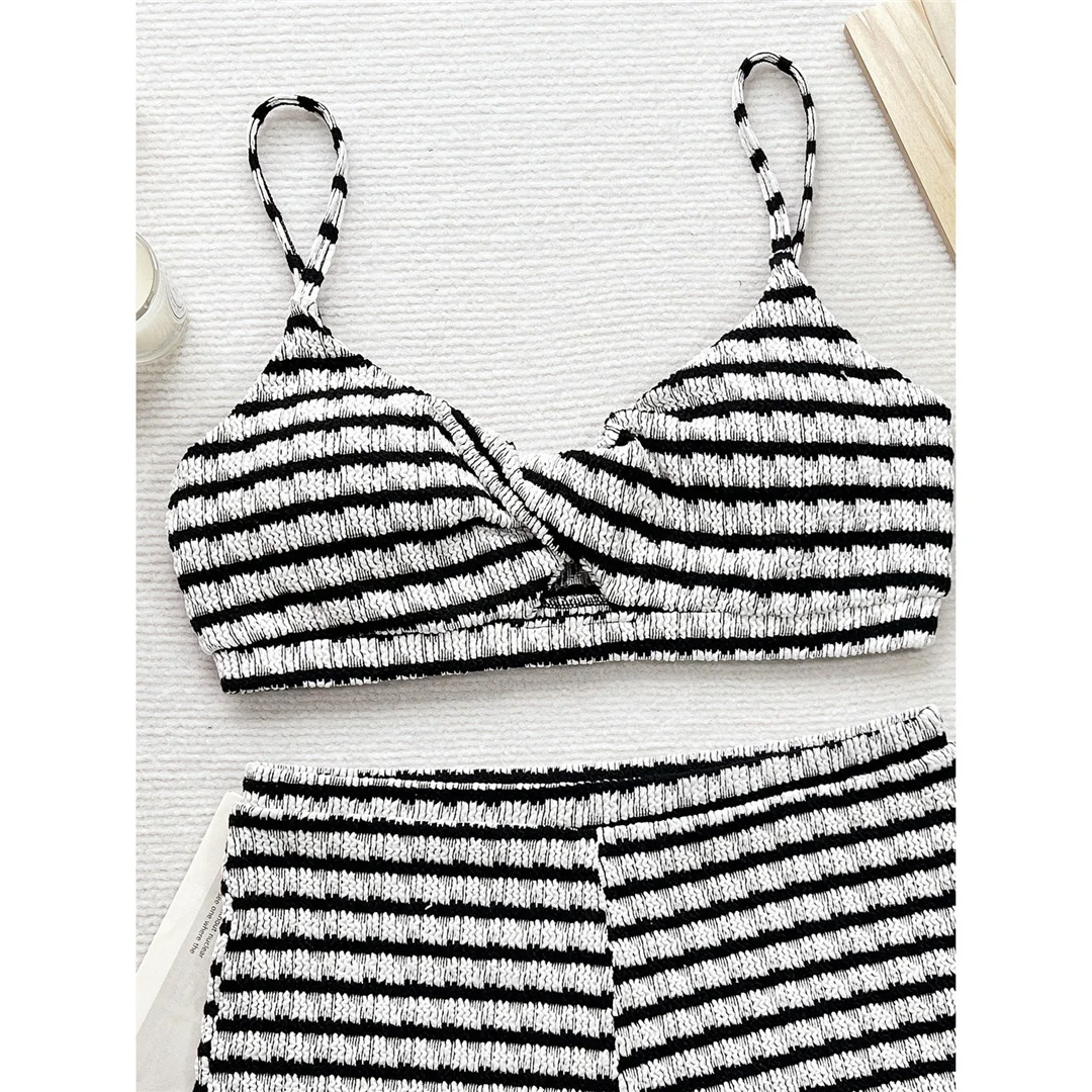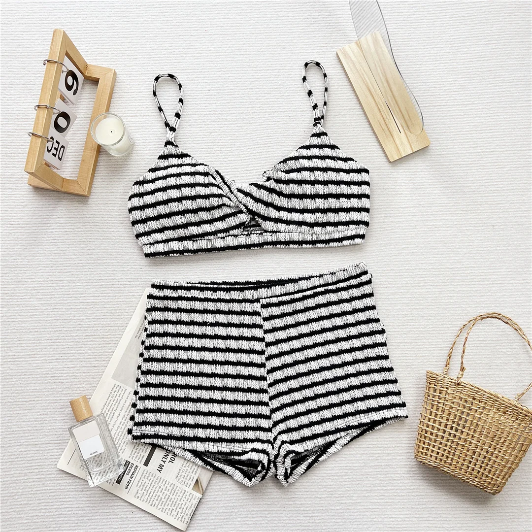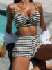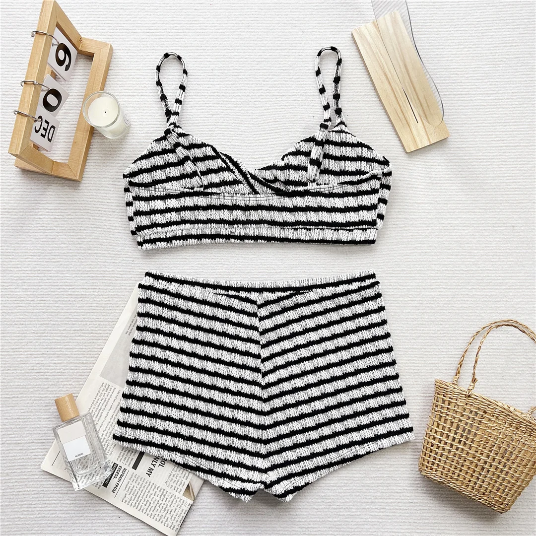 Black White Striped High Waist Bikini Female Swimsuit Women Swimwear Two-pieces Bikini set Shorts Bather Bathing Suit Swim V6626