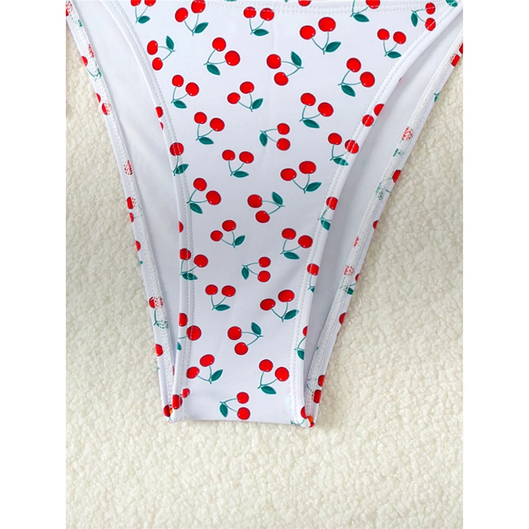 Cherry Printed Halter High Leg Cut Bikini Women Swimwear Female Swimsuit Two-pieces Bikini set Bather Bathing Suit Swim V5872