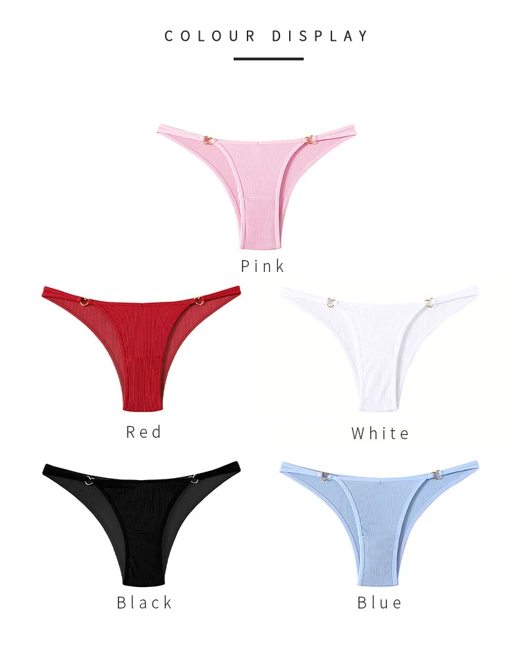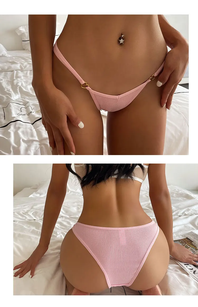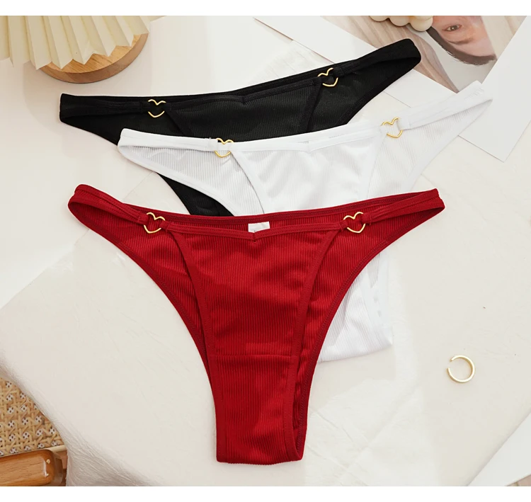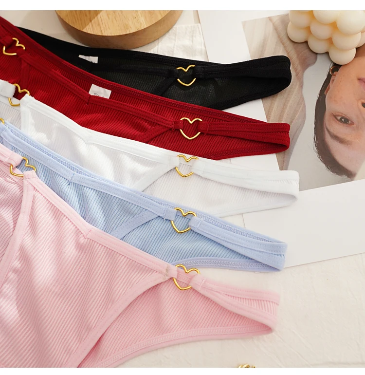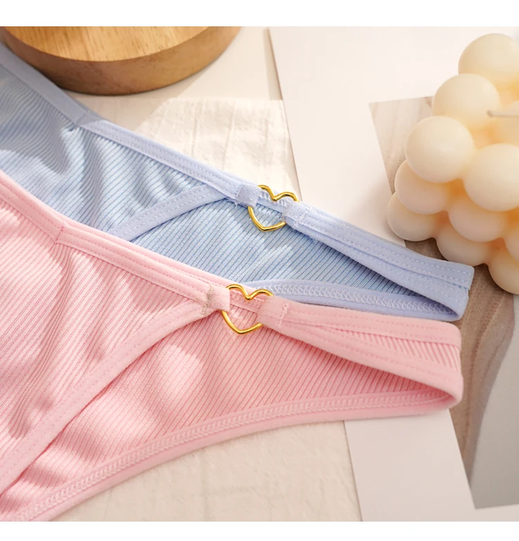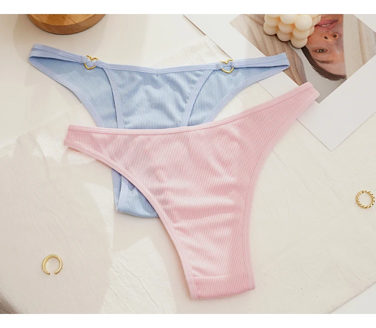 CINOON 2Pcs/Lot Women Cotton Panties Sexy Low Waist Briefs G String Underwear Heart Metal Decoration Underpants Comfort Lingerie