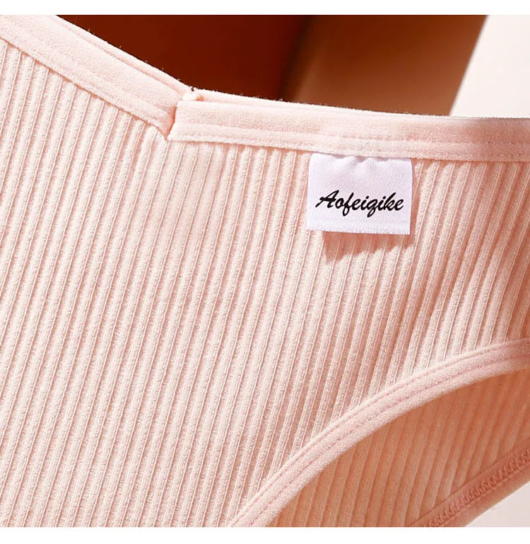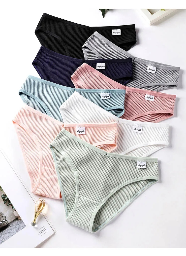 CINOON 3PCS/Set Women’s Panties Striped Cotton Underwear Solid Color Briefs Low-Rise Soft Panty Women Underpants Female Lingerie