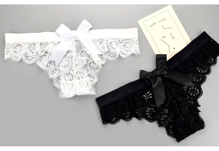 CINOON Sexy LaceThong Bow Panties Female Floral Lace Women Panties Breathable Briefs Ladies Low Waist Transparent Underwear