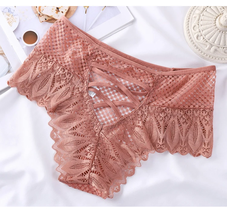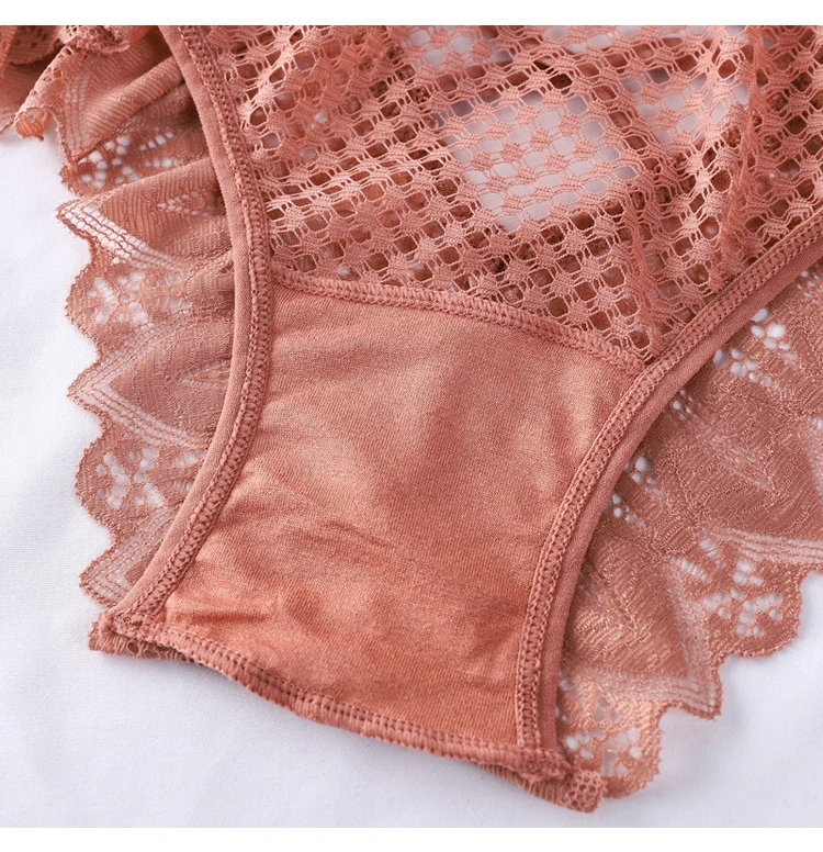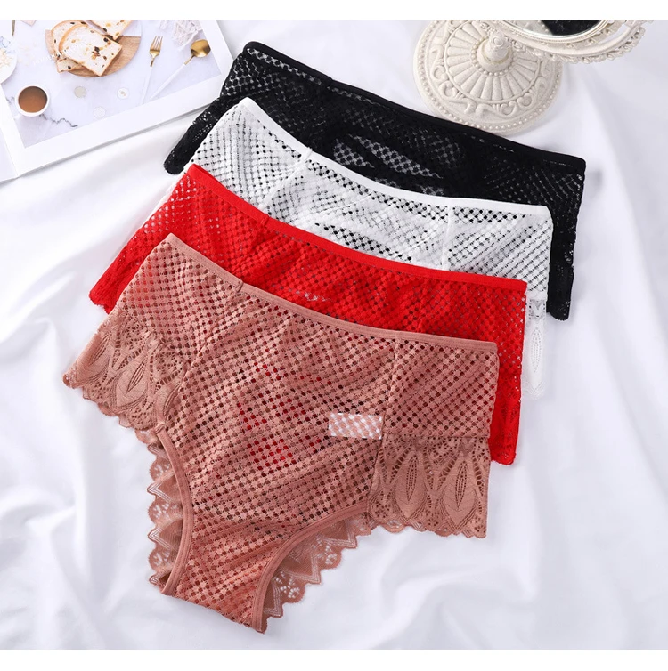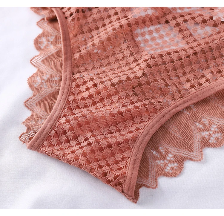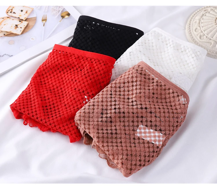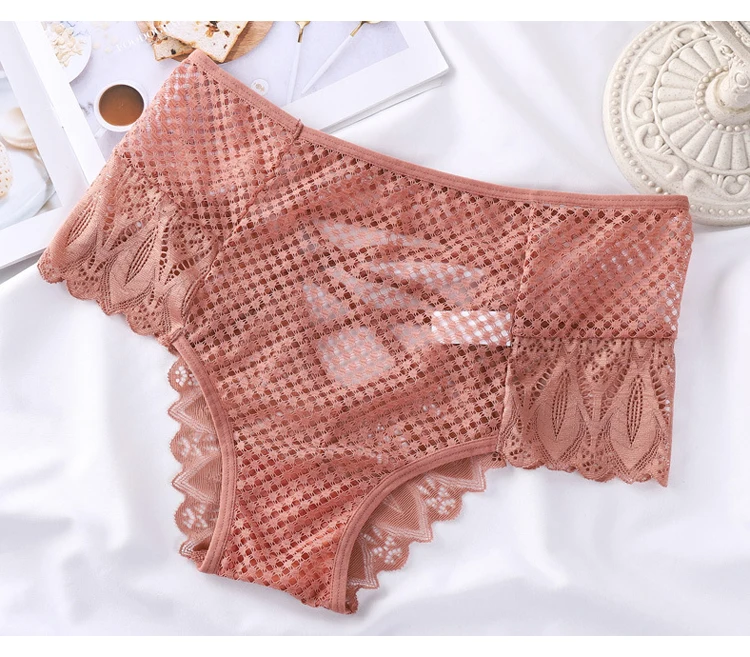 CINOON Sexy Mesh Women Lace Underwear Mid-Rise Briefs Hollow Out G String Underpant Solid Comfortable Female Breathable Lingerie