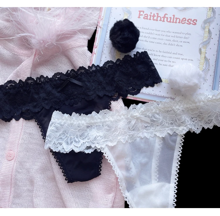 CINOON Sexy Women Lace Panties Low-waist Underwear Thong Female G String Removable Ball Lingerie Temptation Embroidery Intimates