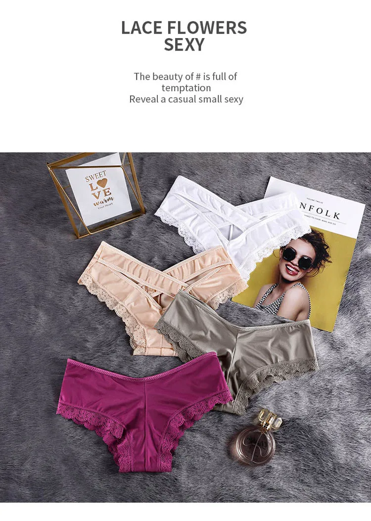 CINOON Sexy Women Panties Ice silk Underwear Low-Waist Brief G String Cross Strap Hollow out Lingerie Comfort Female Underpant