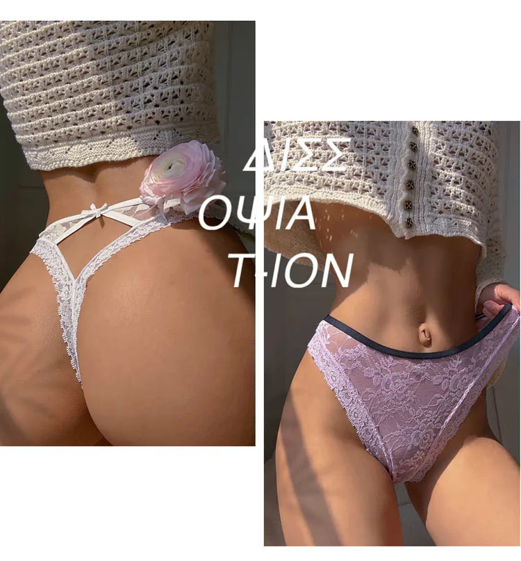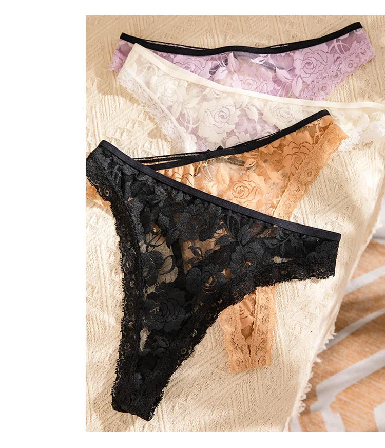 CINOON Women Sexy Lace Panties Transparent Low-waist Underpant Hollow Out Thong Female Embroidery G-string Underwear Lingerie