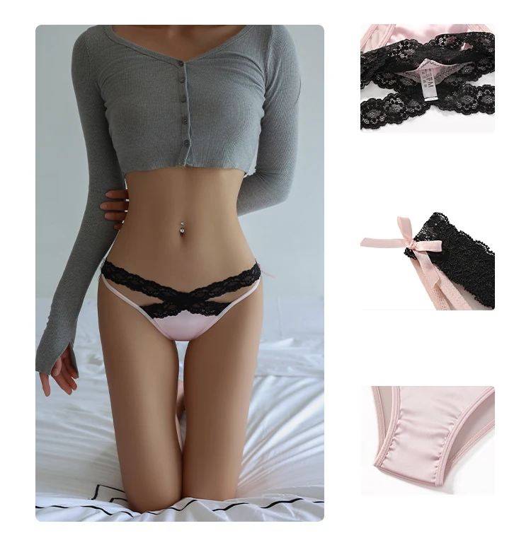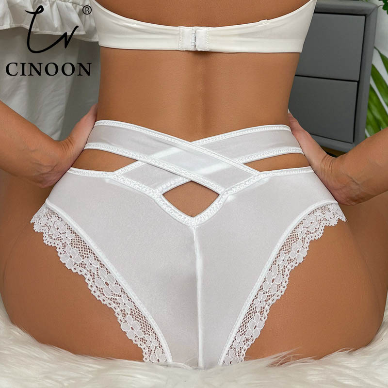 CINOON Women Sexy Lingerie G String Lace Panties Femal Low-waist Cross Bandage Transparent Temptation Underwear Comfort Intimate