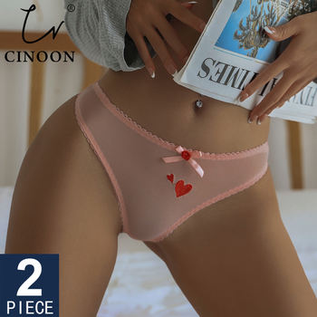 CINOON 2PCS/Set Women Sexy Lace Lingerie Temptation Low-waist Panties Heart Ins Embroidery Transparent Thong Sweet Underwear