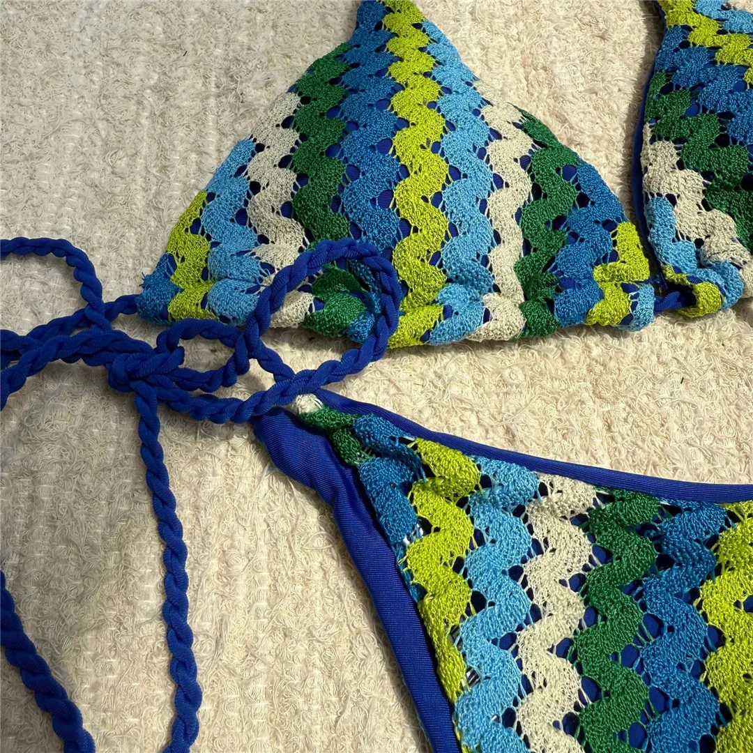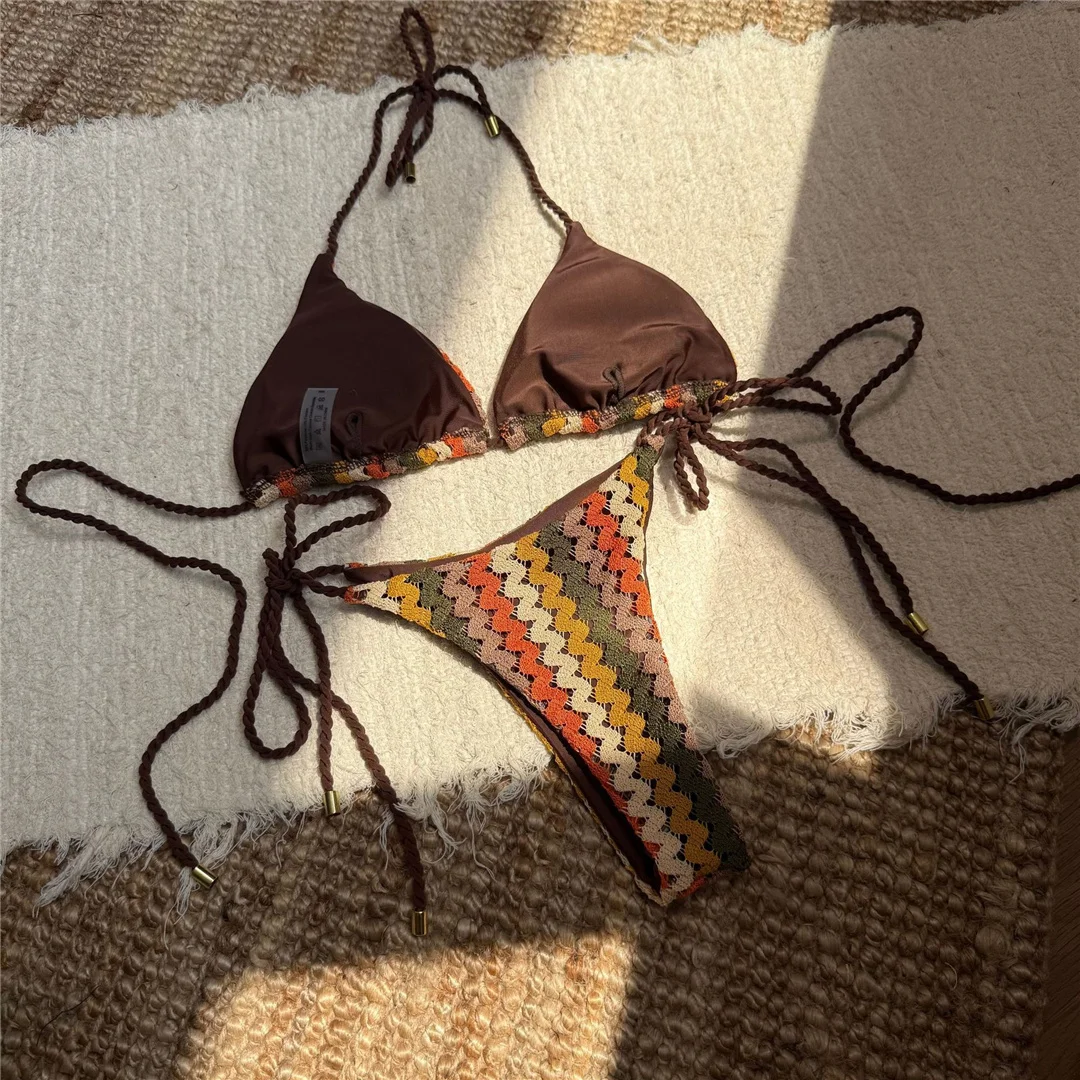 Colorful Halter Bikini Women Swimwear Female Swimsuit Two-pieces Bikini set High Leg Cut Padded Bather Bathing Suit Swim V6991