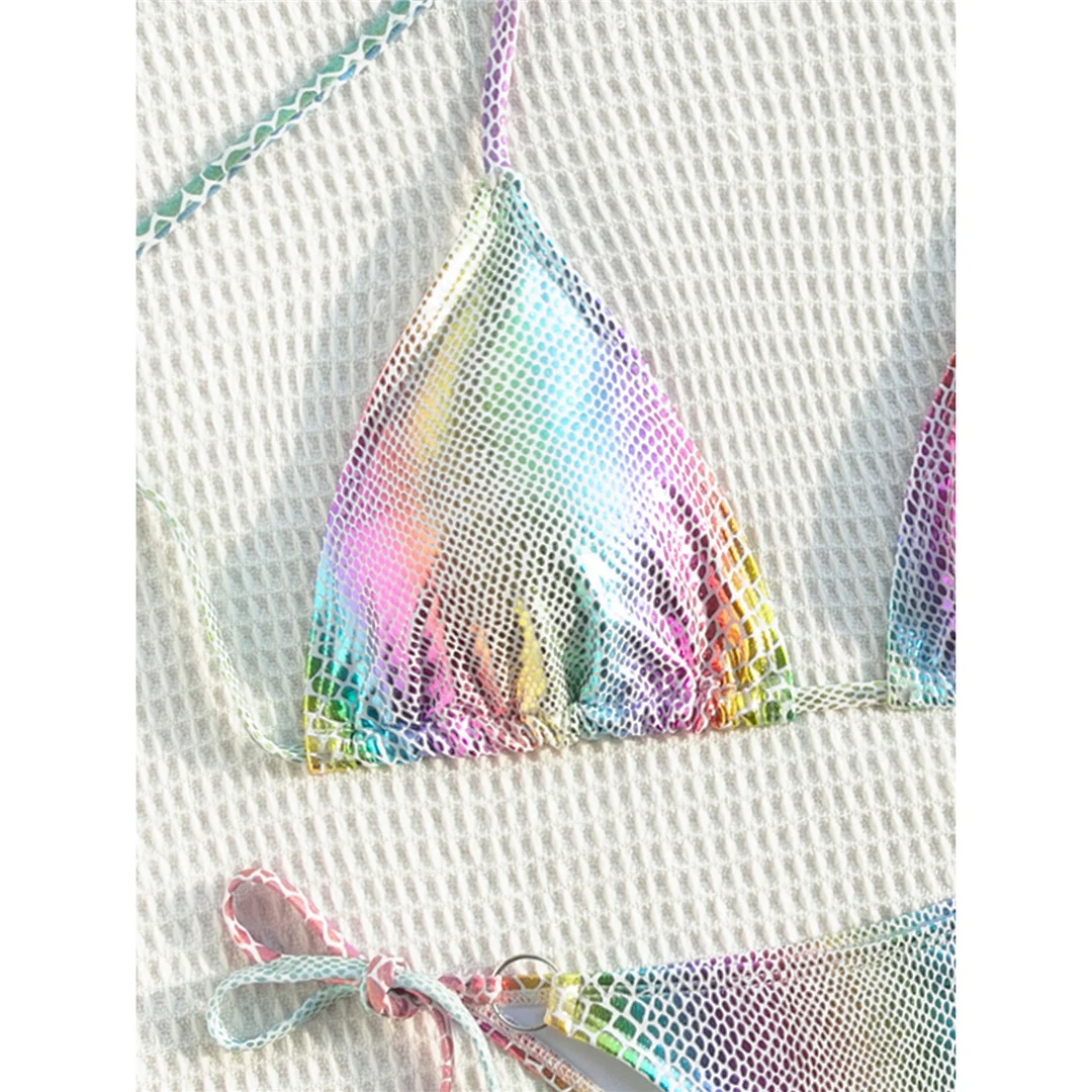 Colorful Snake Skin Halter Strappy Bikini Female Swimsuit Women Swimwear Two-pieces Bikini set Bather Bathing Suit Swim V5822