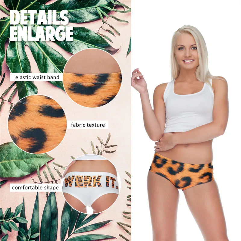 DeanFire Kawaii 3D Panties Women Underwear Twerk It Leopard Funny Print Lovely Push Up Briefs Lingerie Thong for Female