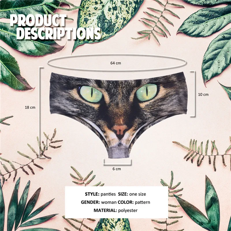 DeanFire Kawaii 3D Panties Women Underwear Wild Cat Green Funny Print Lovely Push Up Briefs Lingerie Thong for Female