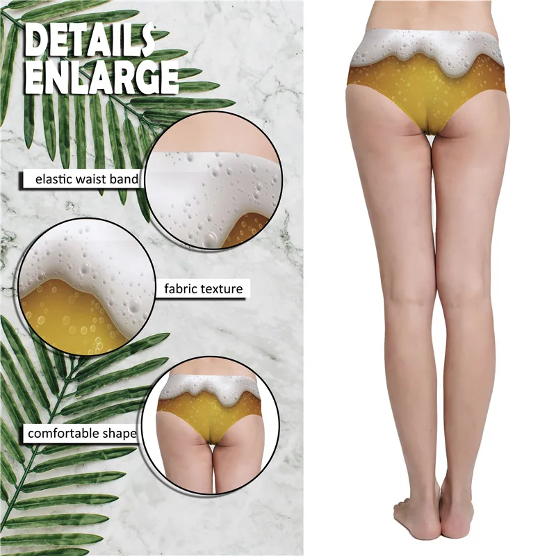 DeanFire Super Soft Kawaii Women’s Underwear Panties Novelty Beer Print Push Up Briefs Lingerie Thong Gifts