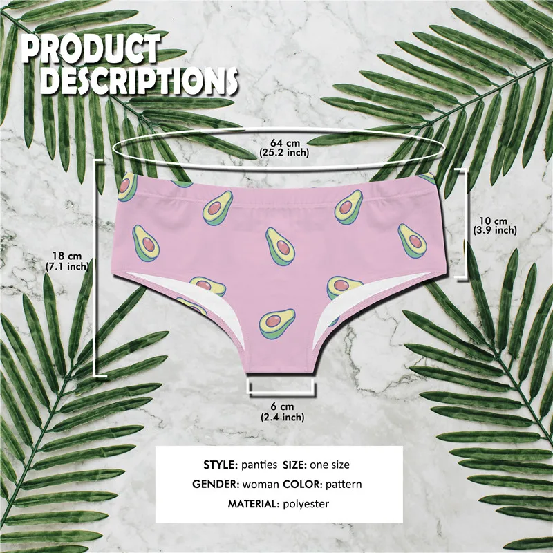 DeanFire Super Soft Novelty Hipster Women’s Underwear Panties Avocado Print Kawaii Push Up Briefs Lingerie Thong For Girls