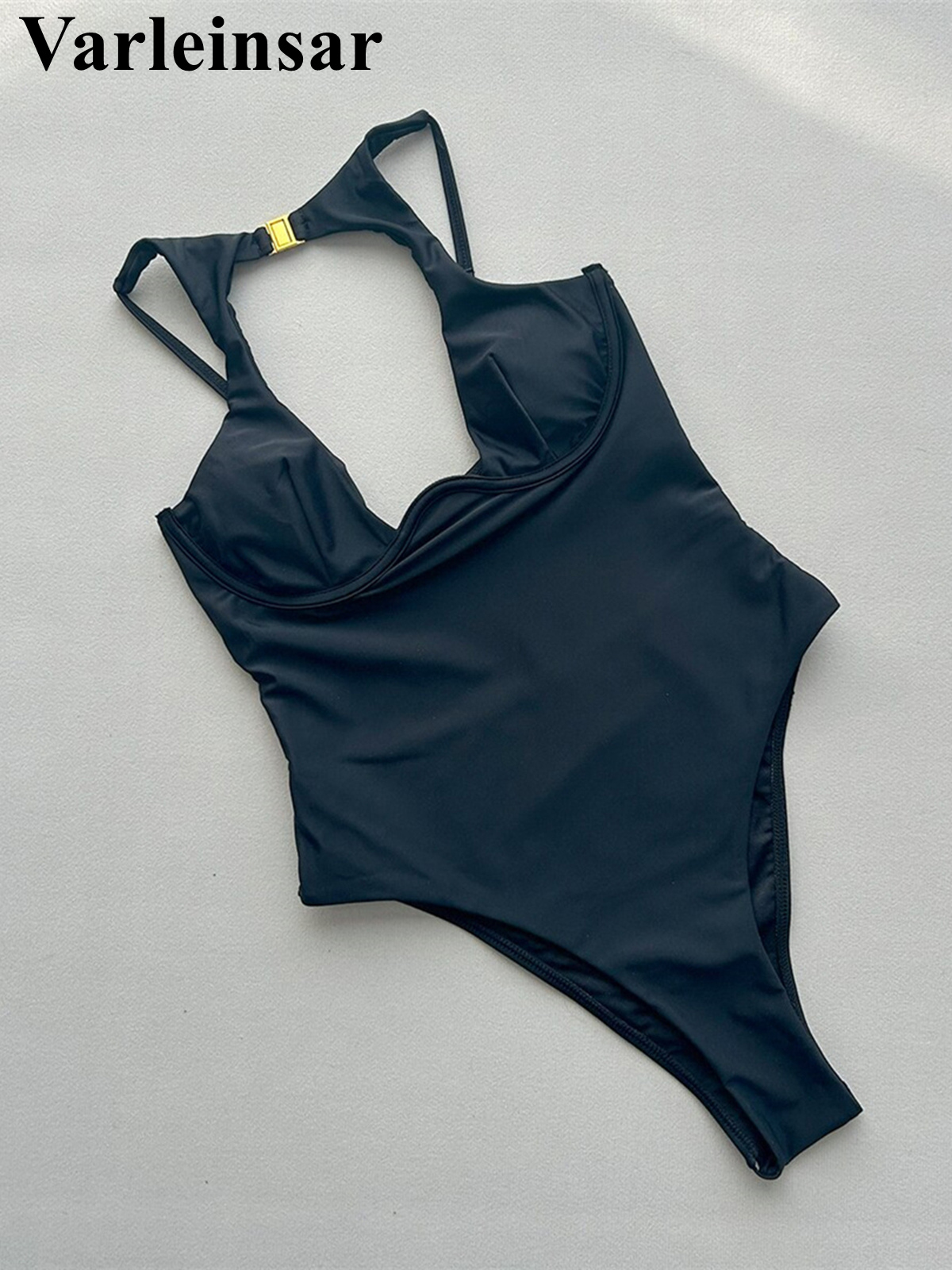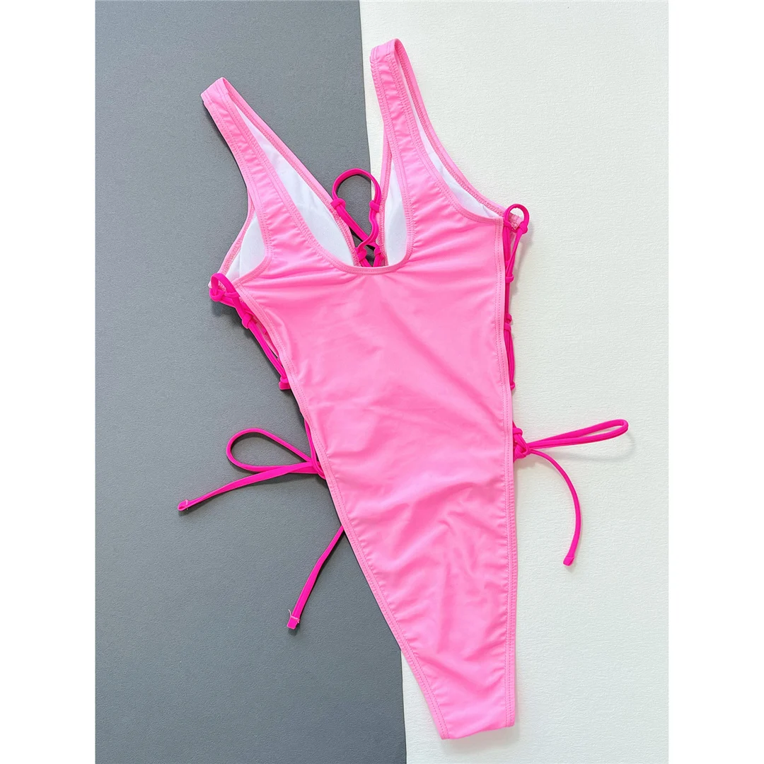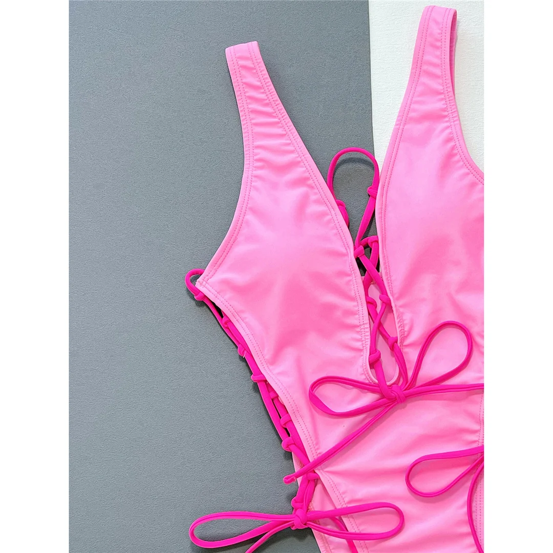 Deep V Neck Lace Up High Leg Cut Women Swimwear One Piece Swimsuit Female Wrap Around Monokini Bather Bathing Suit Swim V4719