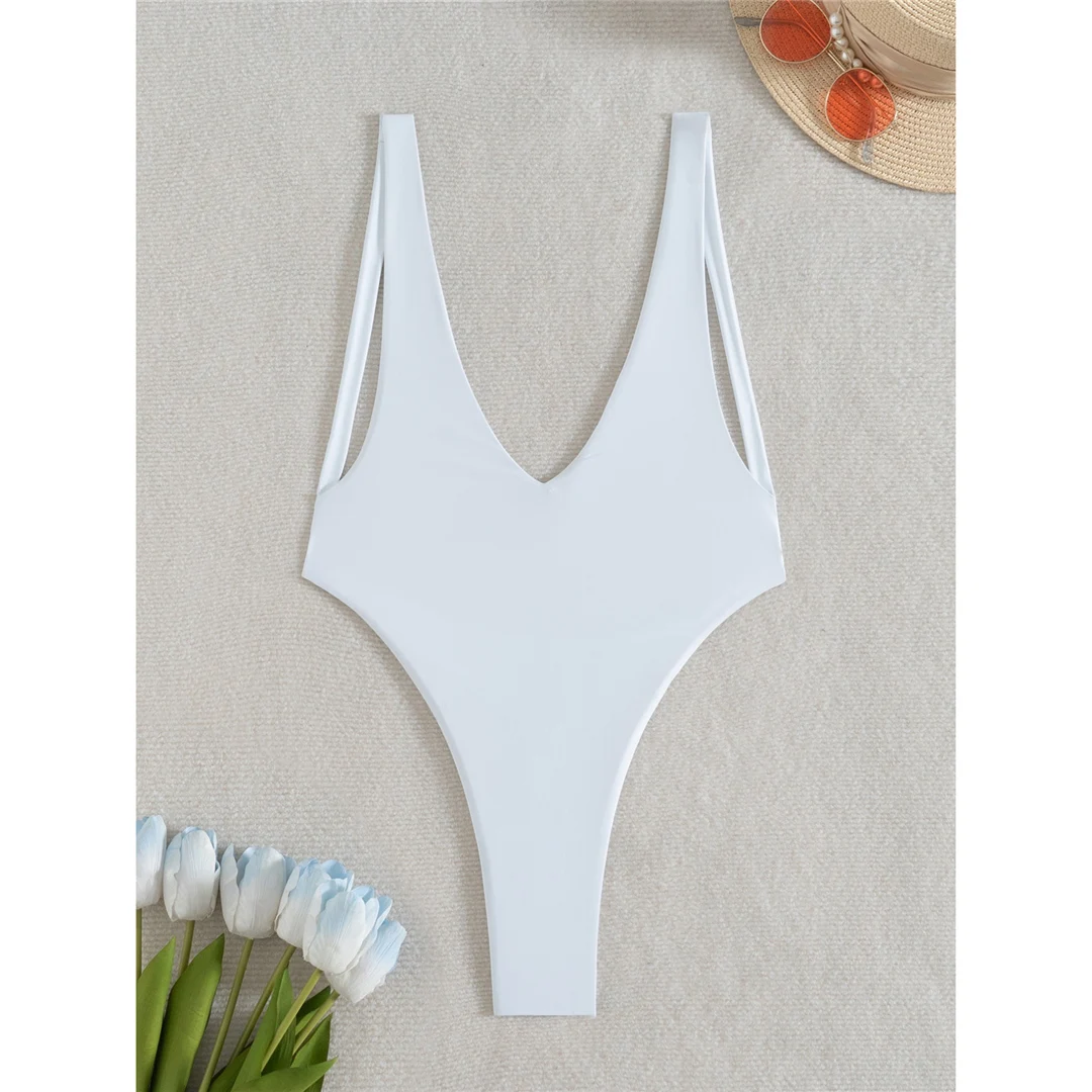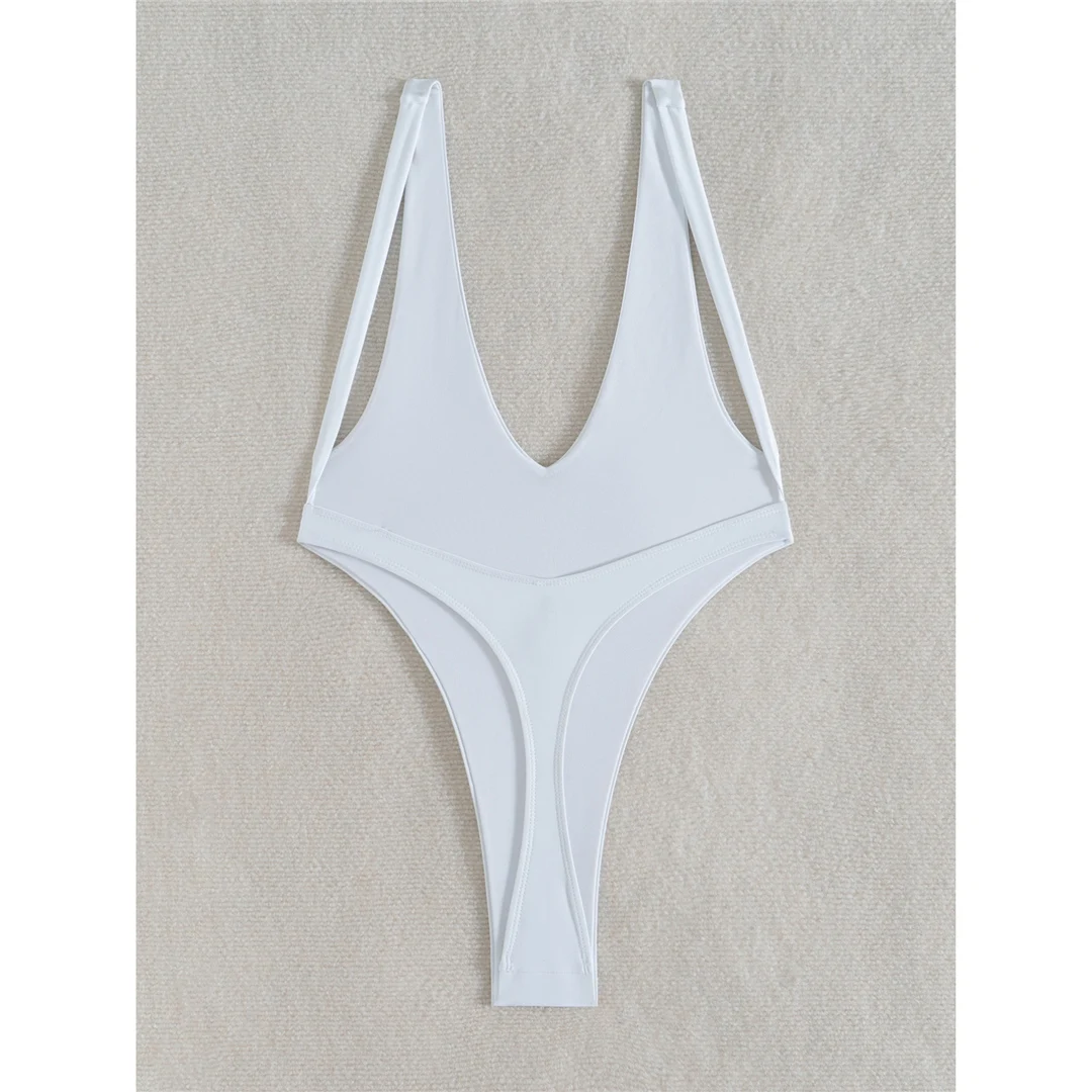 Deep V Neck Mini Micro Thong High Cut One Piece Swimsuit Women Swimwear Female Backless Padded Bather Bathing Suit Swim V6363