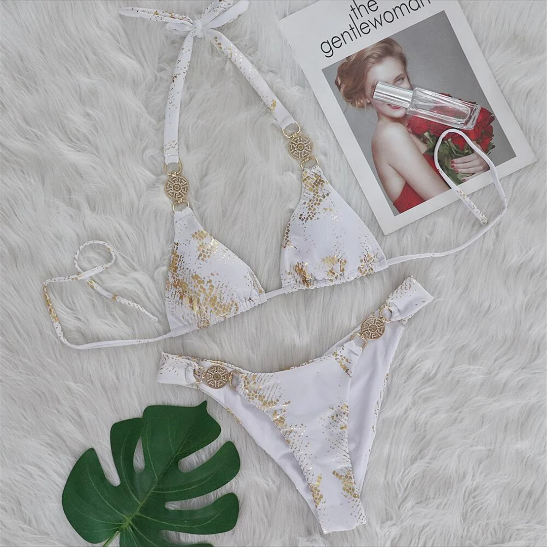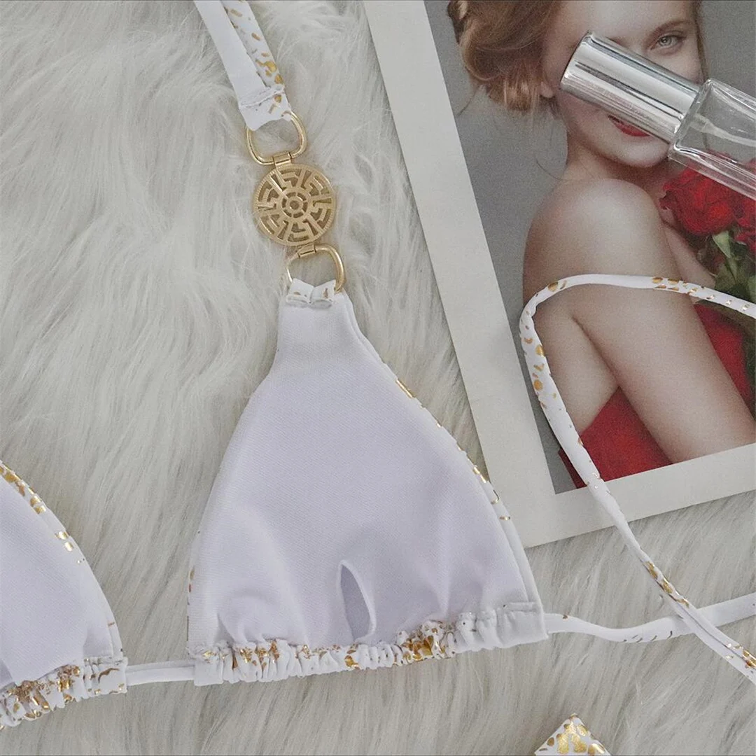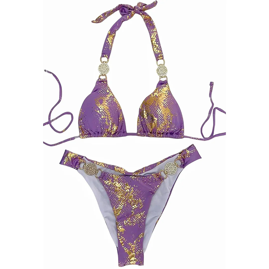 Diamond Printed Halter Scrunch Butt Bikini Women Swimwear Female Swimsuit Two-pieces Bikini set Bather Bathing Suit Swim V4897