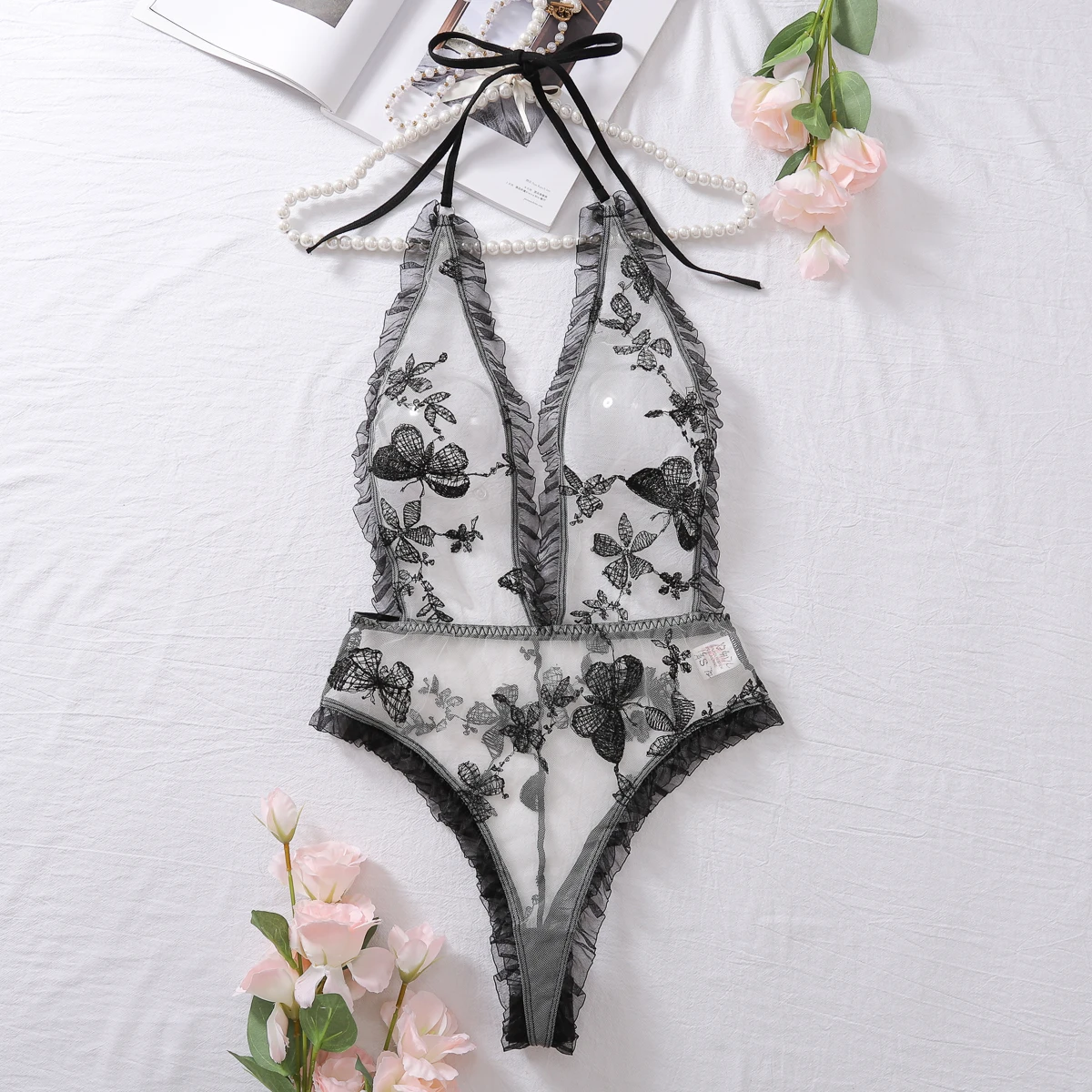 Diccvicc Backless Bodysuit Halter Sexy Tops Sheer Mesh Women Body Lingerie See Through Lady Underwear Party Dress Exotic Apparel