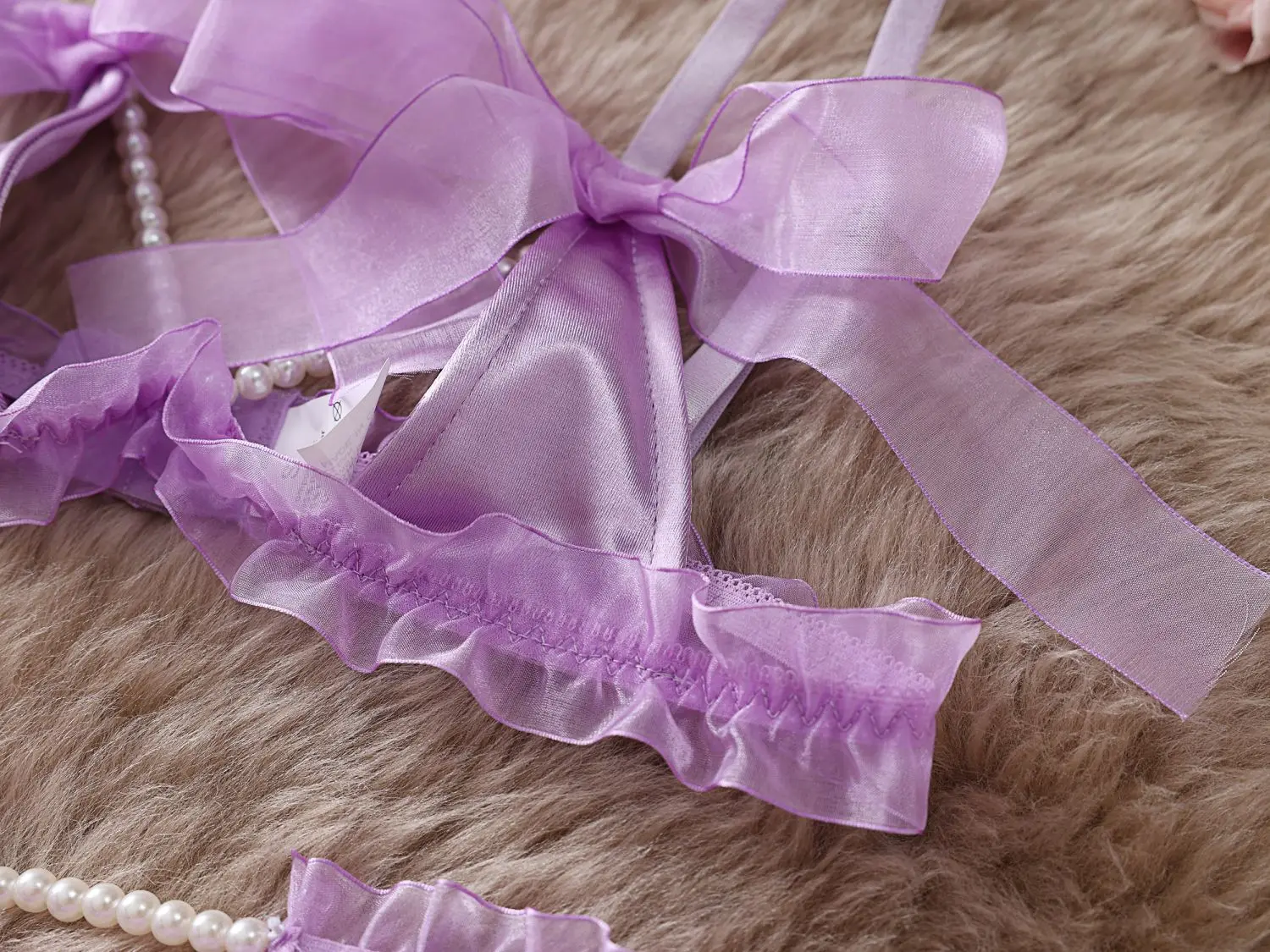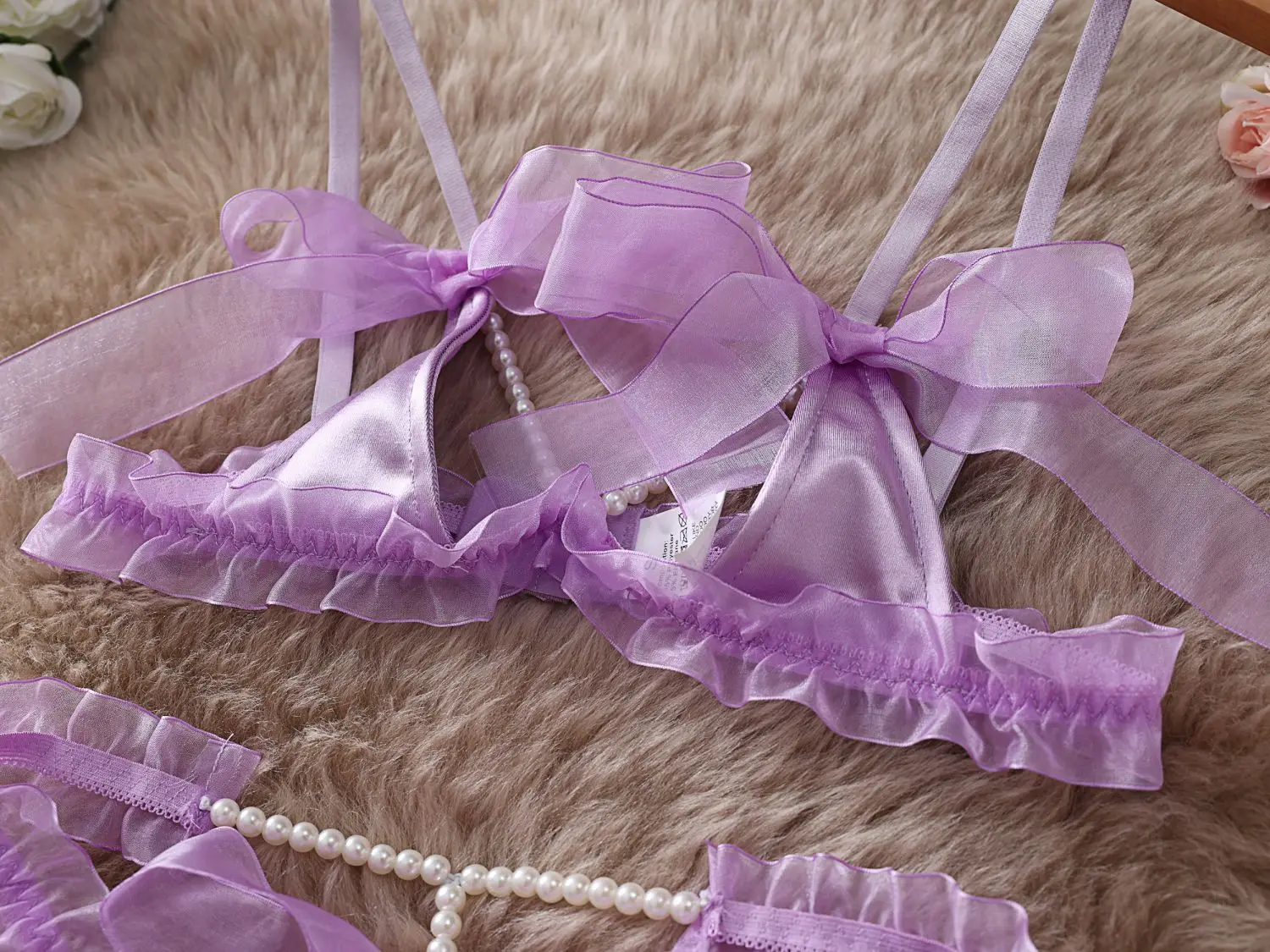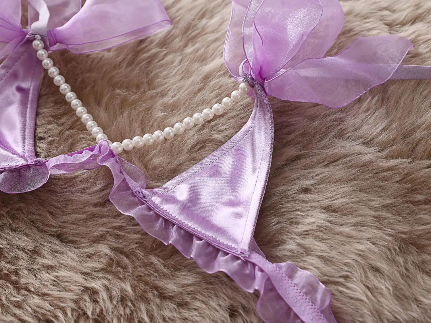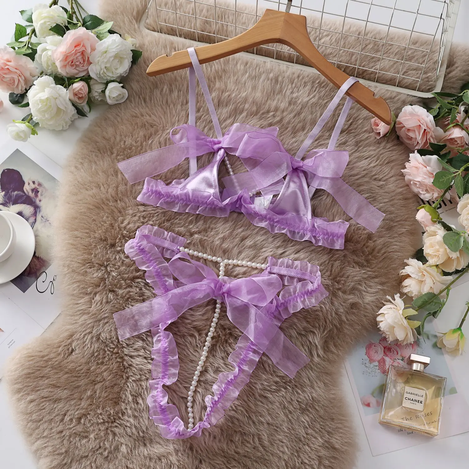 Diccvicc Beading Underwear Fine Woman 2 Pieces Bowknot Sexy Bra Thong Set Uncensored Sensual Kit Intimate Exotic Lingerie Outfit