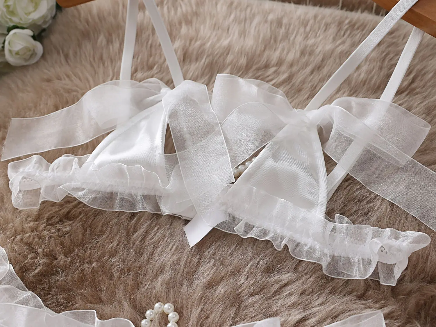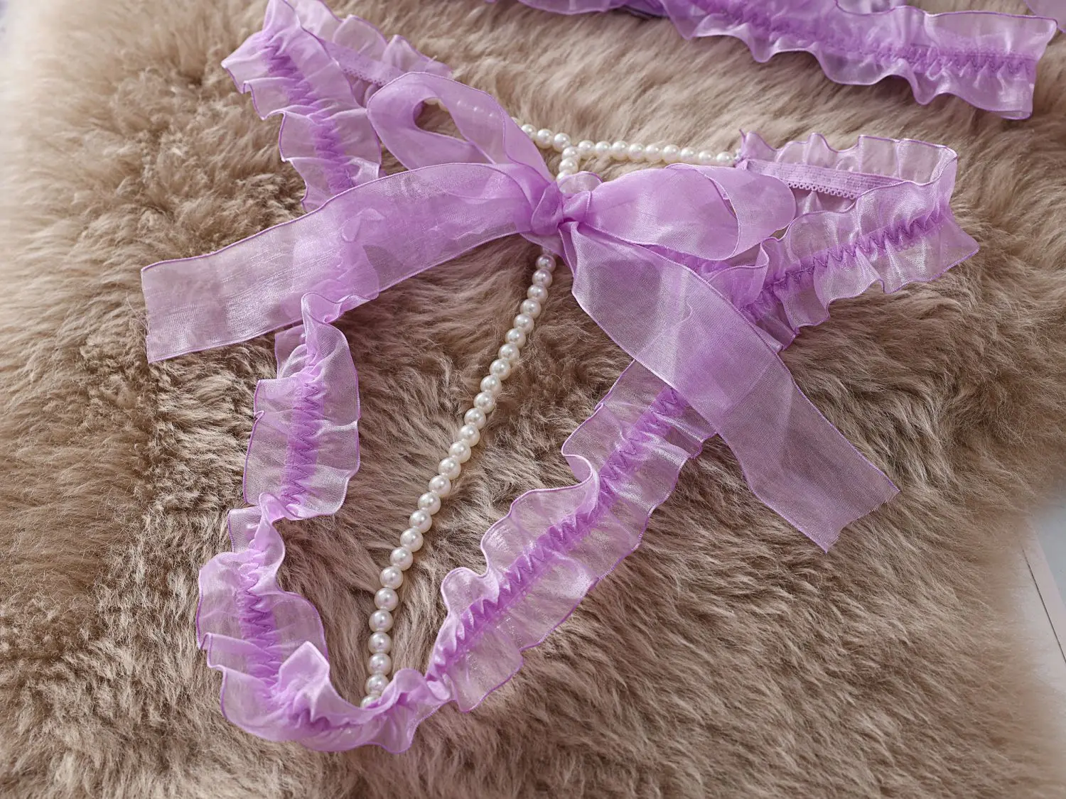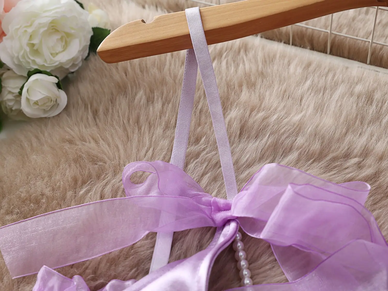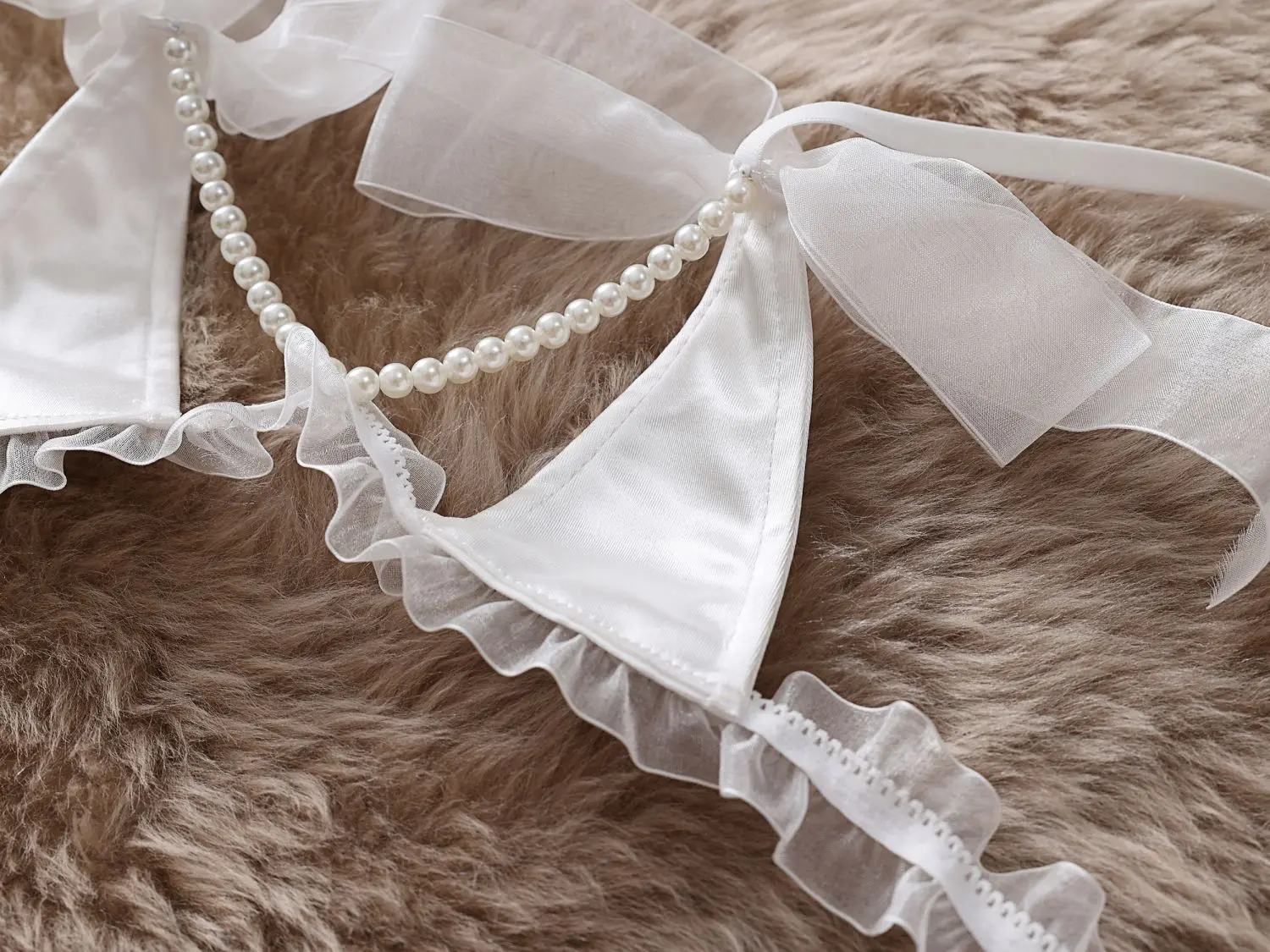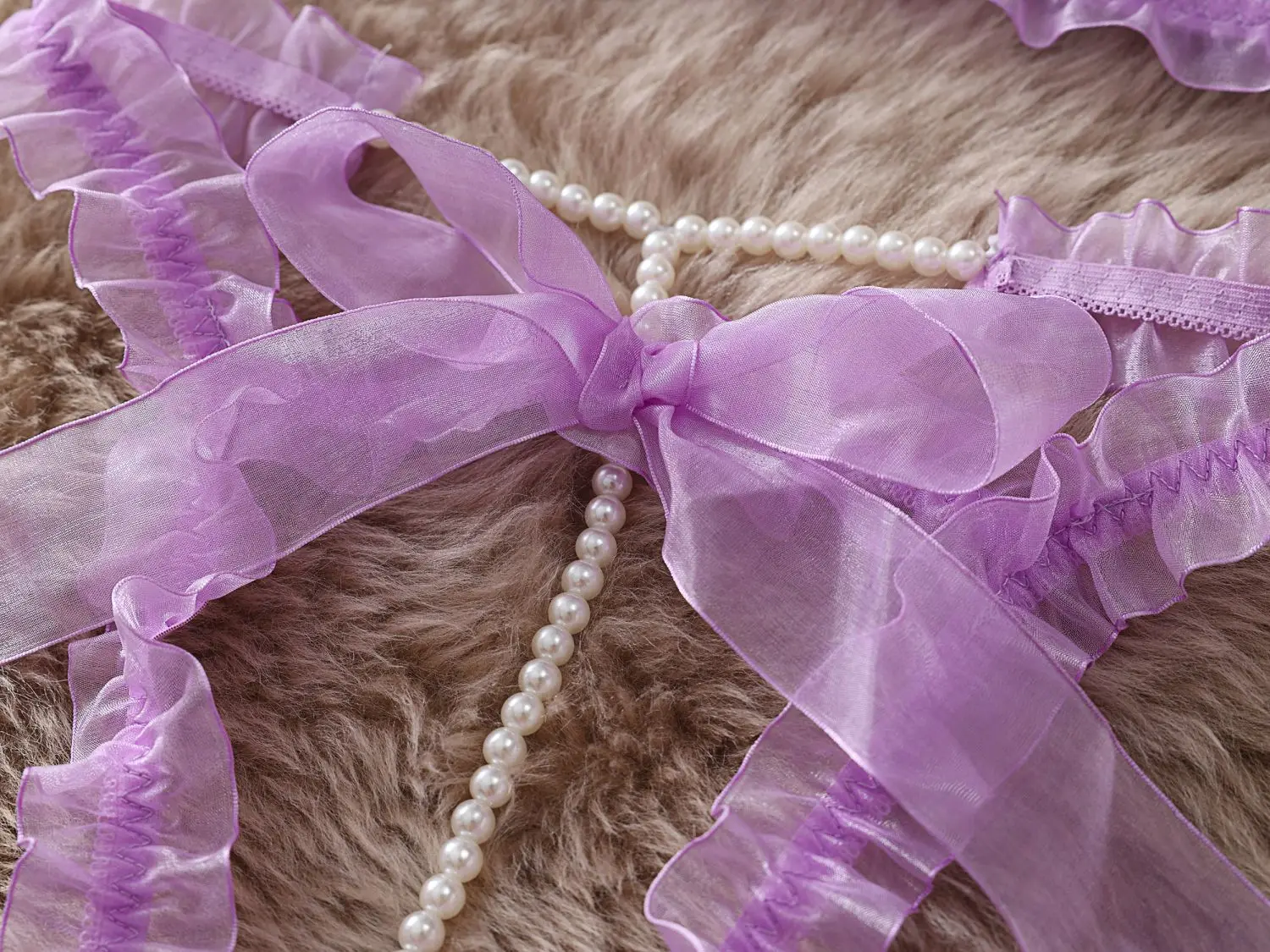 Diccvicc Beading Underwear Fine Woman 2 Pieces Bowknot Sexy Bra Thong Set Uncensored Sensual Kit Intimate Exotic Lingerie Outfit