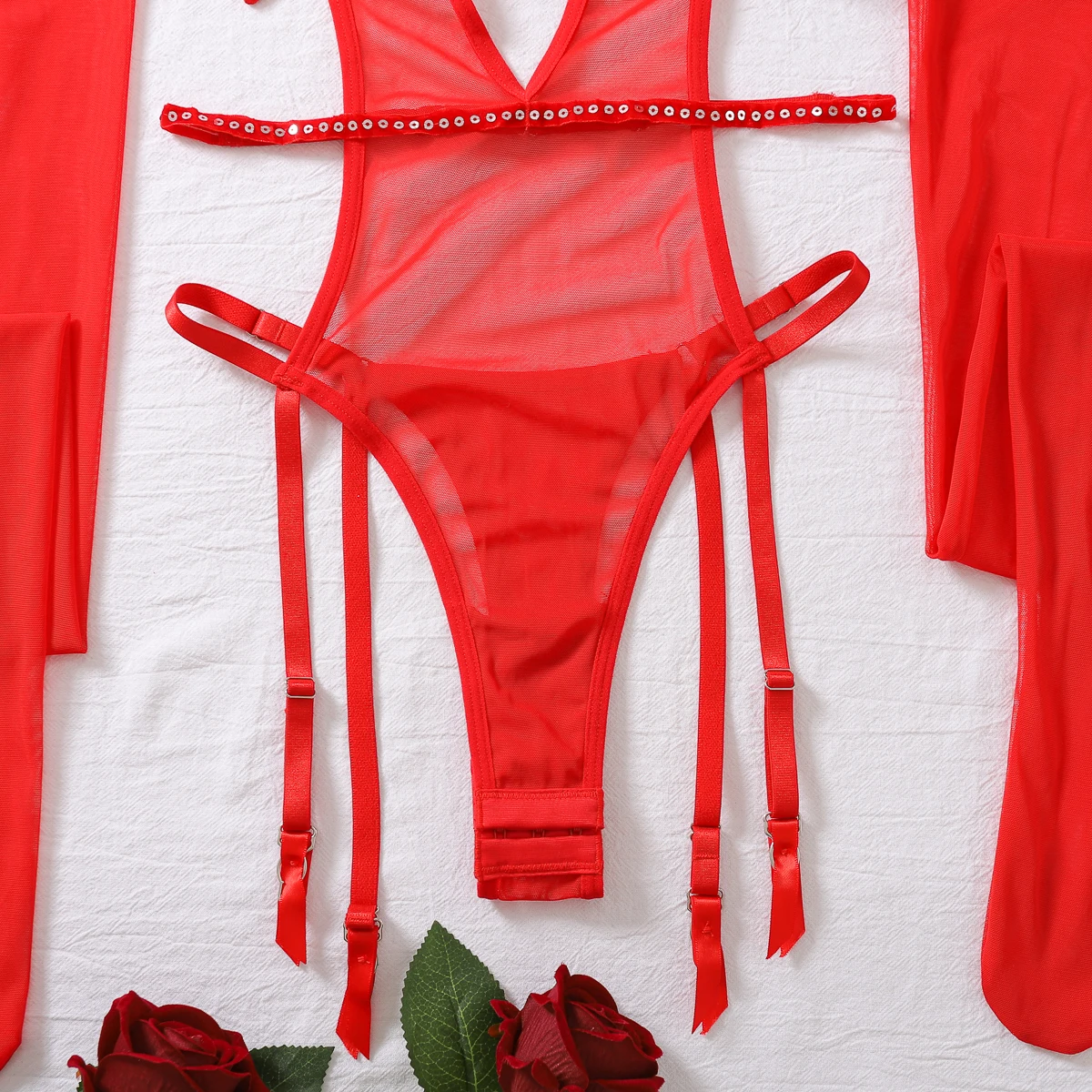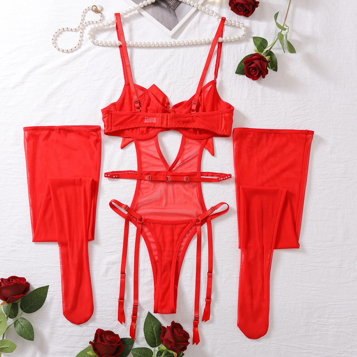 Diccvicc Bowknot Bodysuit One Piece Hollow Out Body Lingerie Fancy Women Underwear Babydoll Sexy Outfit Sissy Intimate Apparel