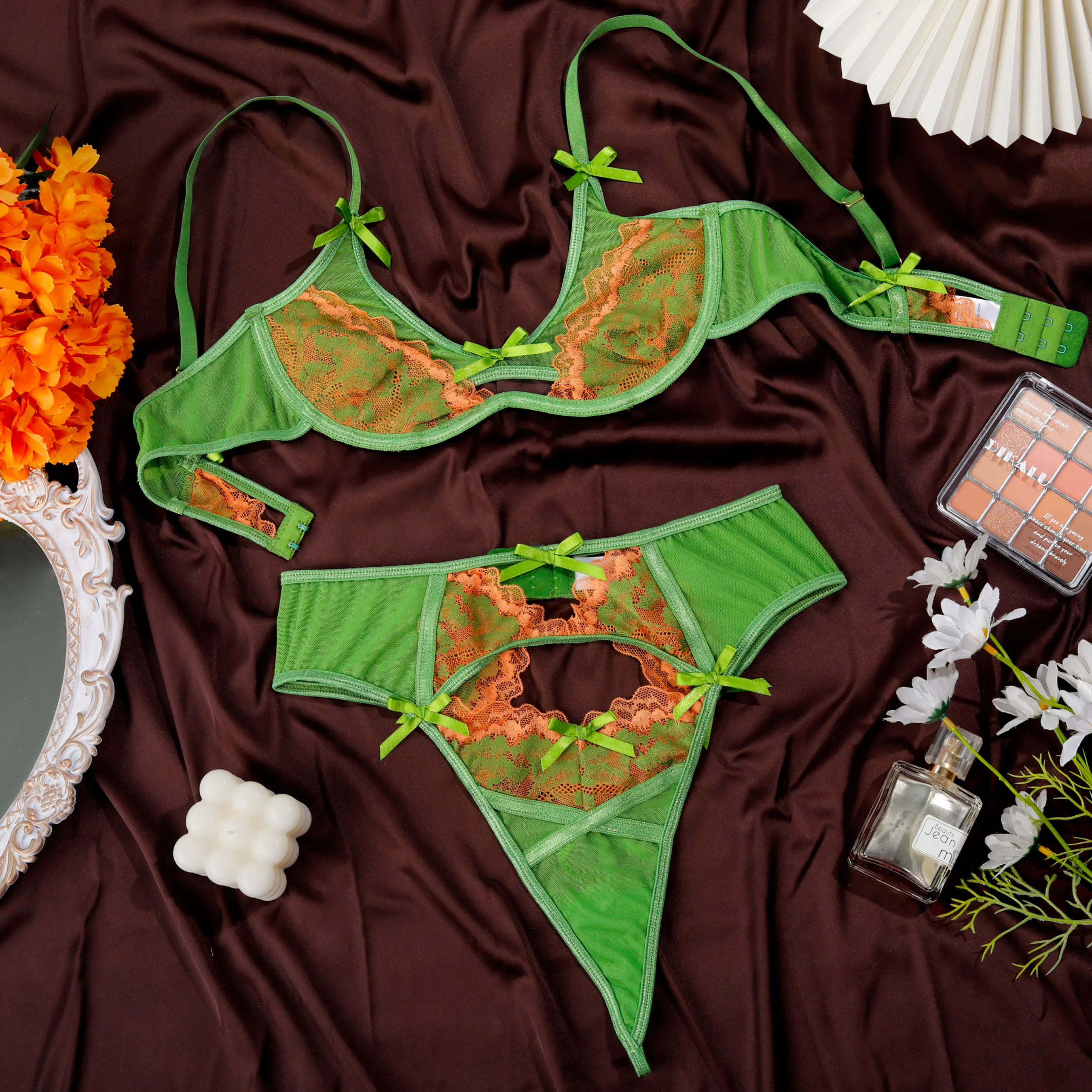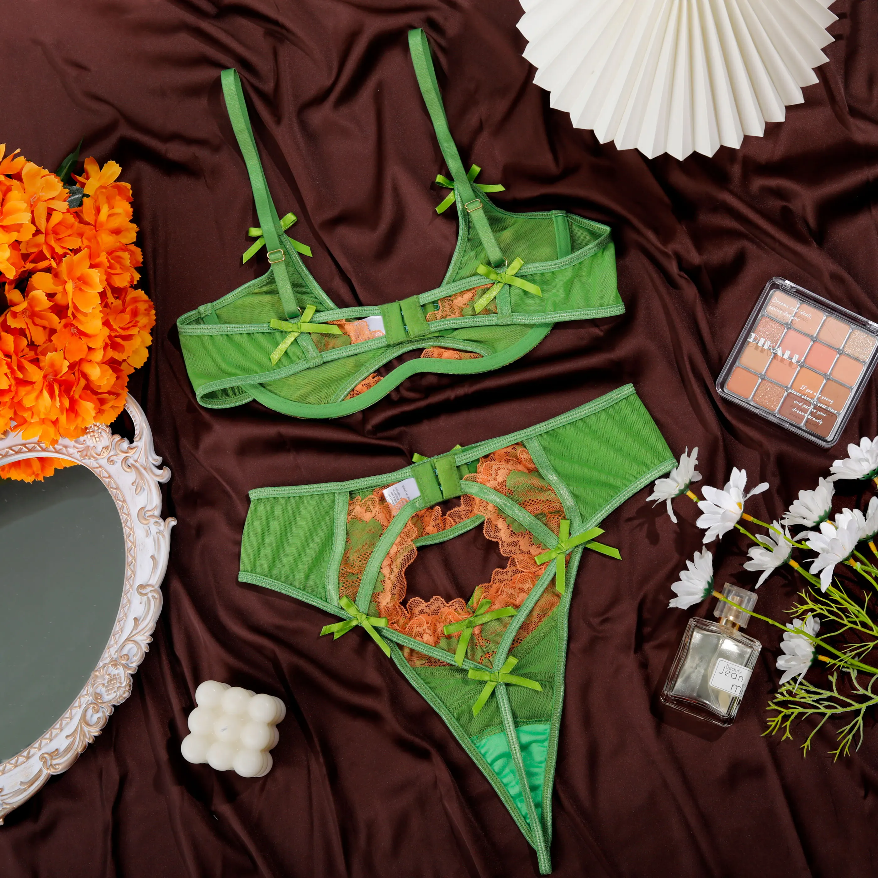 Diccvicc Bowknot Lingerie for Women Cut Out Bra Fancy Embroidery Lace Panty Set Intimacy Wear Two Pieces Sexy Romantic Underwear