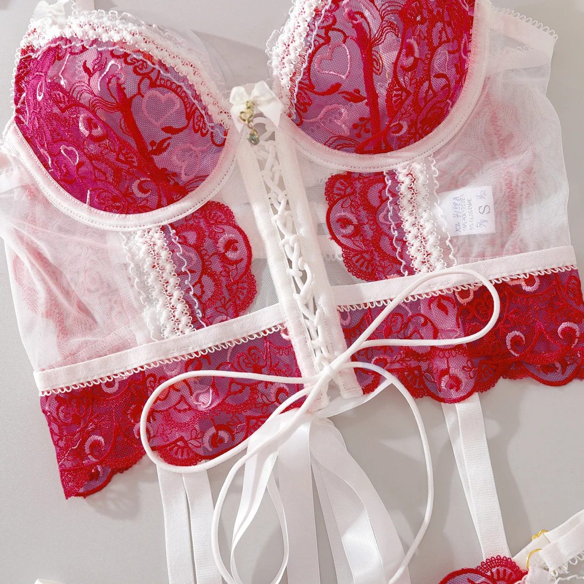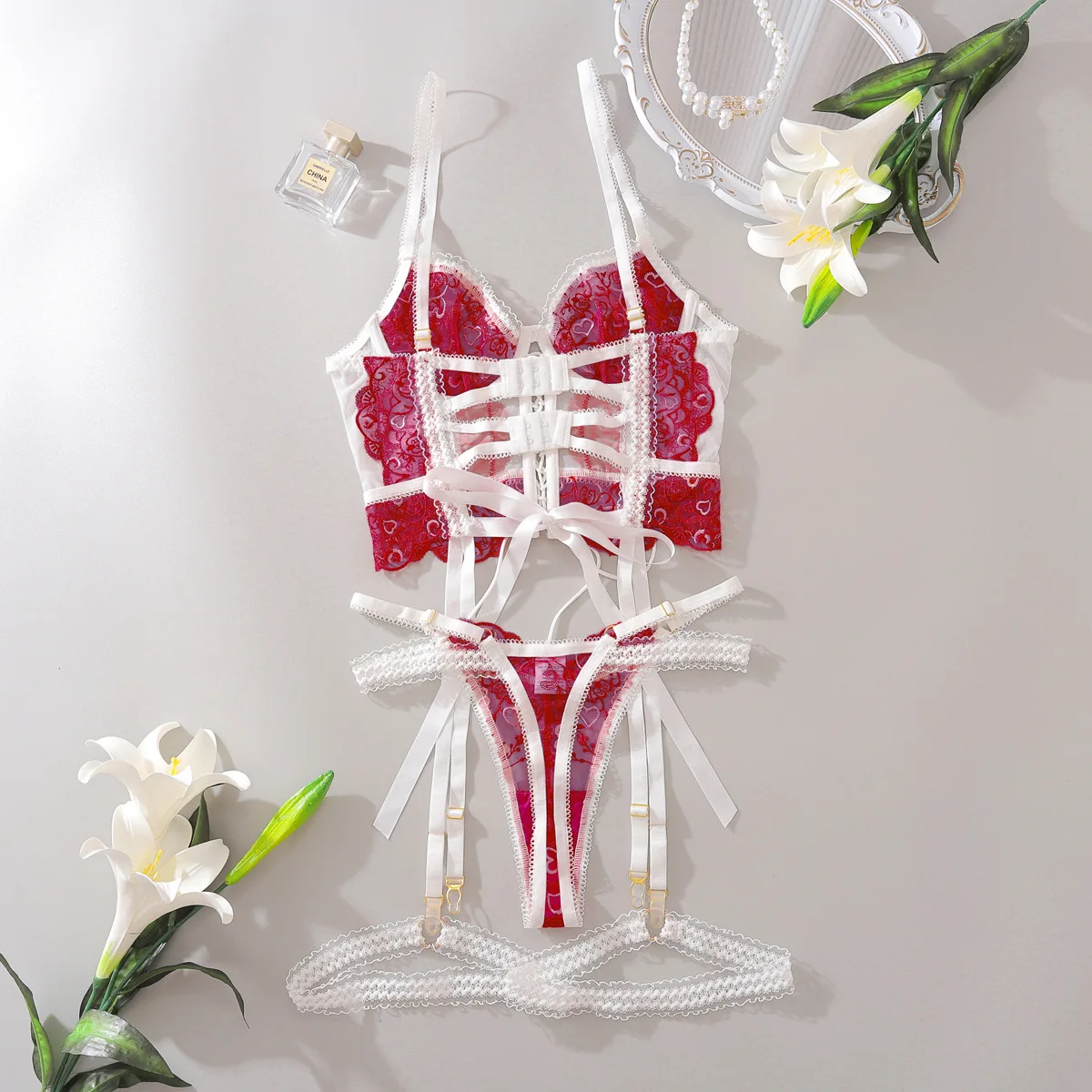 Diccvicc Contrast Color Lingerie Lace Up Sexy Tops Hollow Out Panty Suit See Through Naked Women Underwear Uncensored Exotic Set