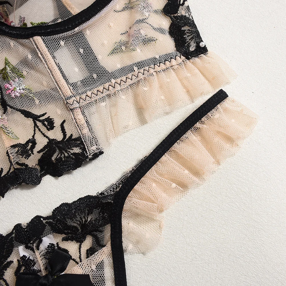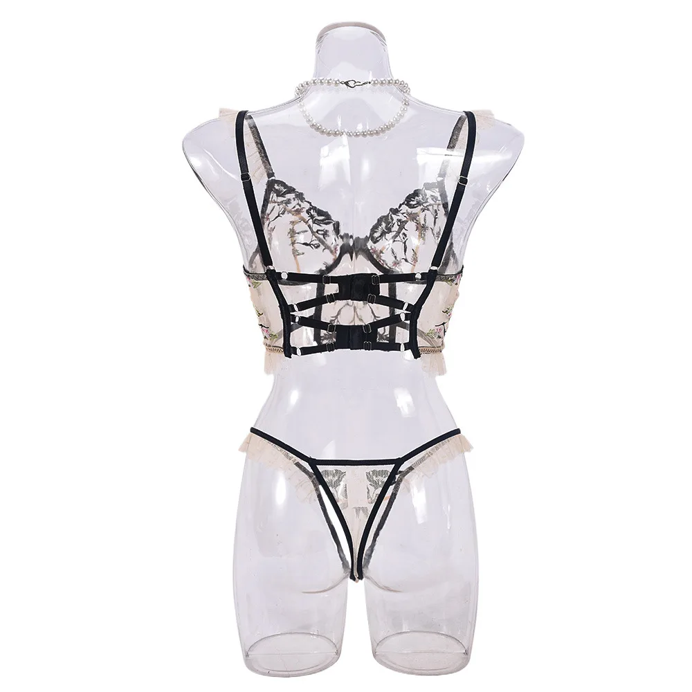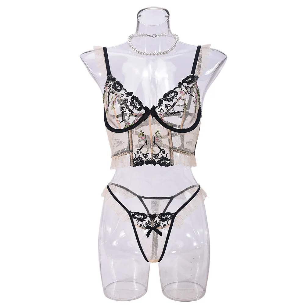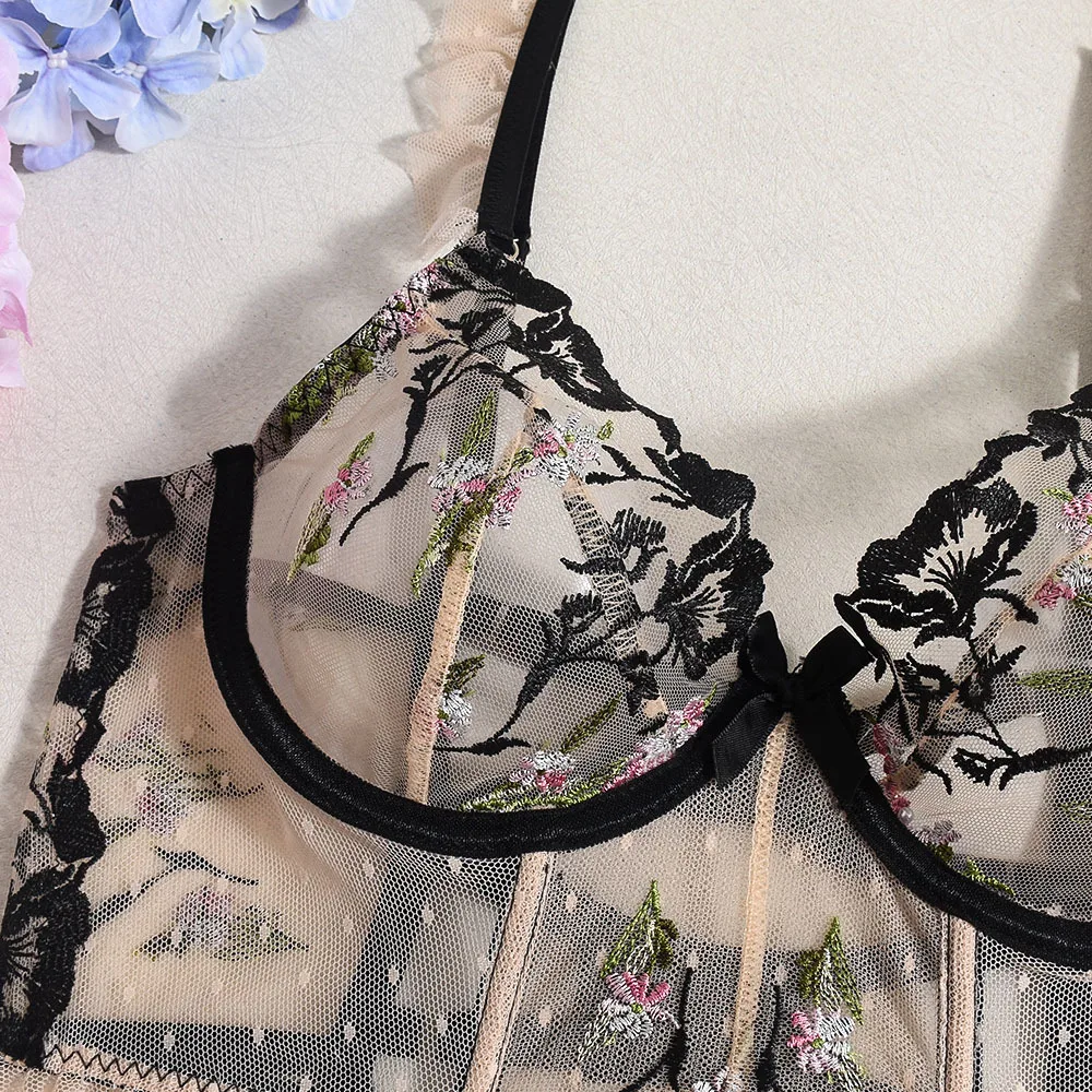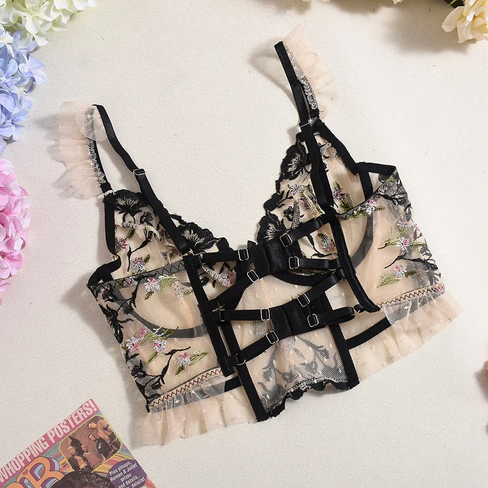 Diccvicc Corset Lingerie Transparent Floral Lace Sexy Tops 2 Pieces Bra Panty Set Sexy Underwear Woman Erotic Outfit Intimates