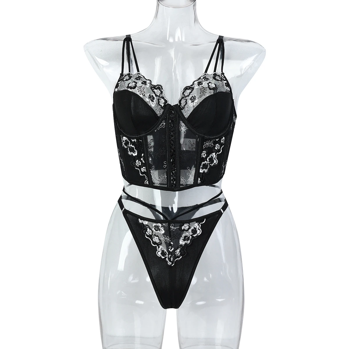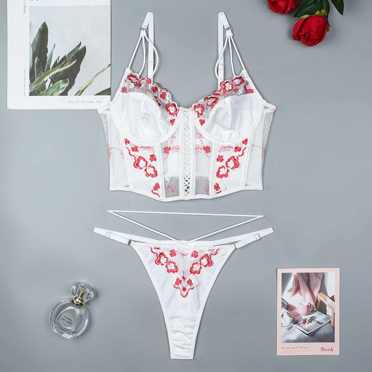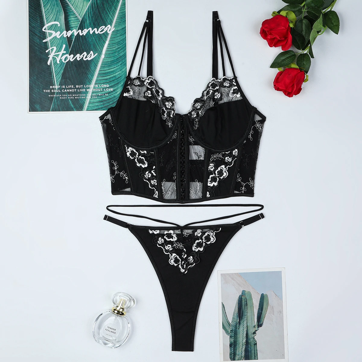 Diccvicc Corset Top Lingerie Two Pieces Embroidery Bra Panty Set Sexy Underwear Elegant Woman Fancy Lady Clothes Exotic Apparel