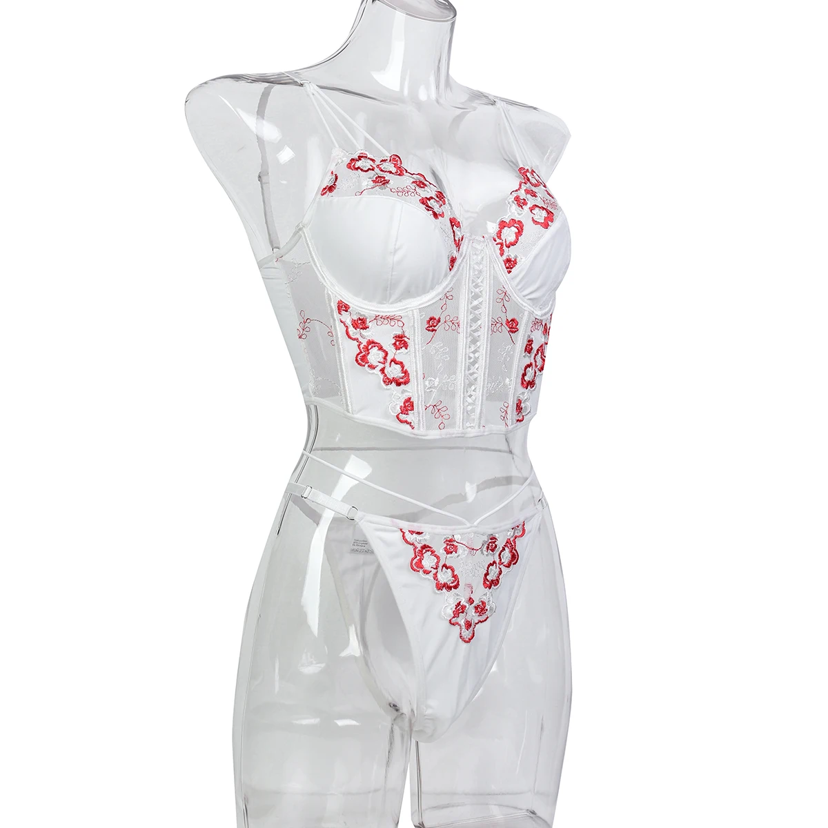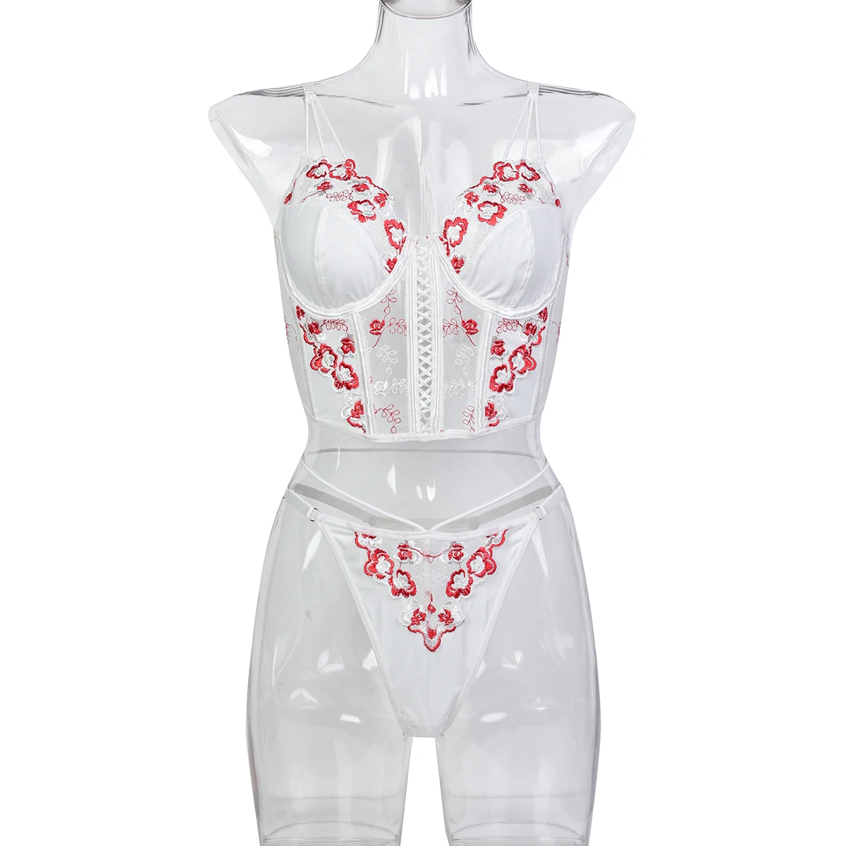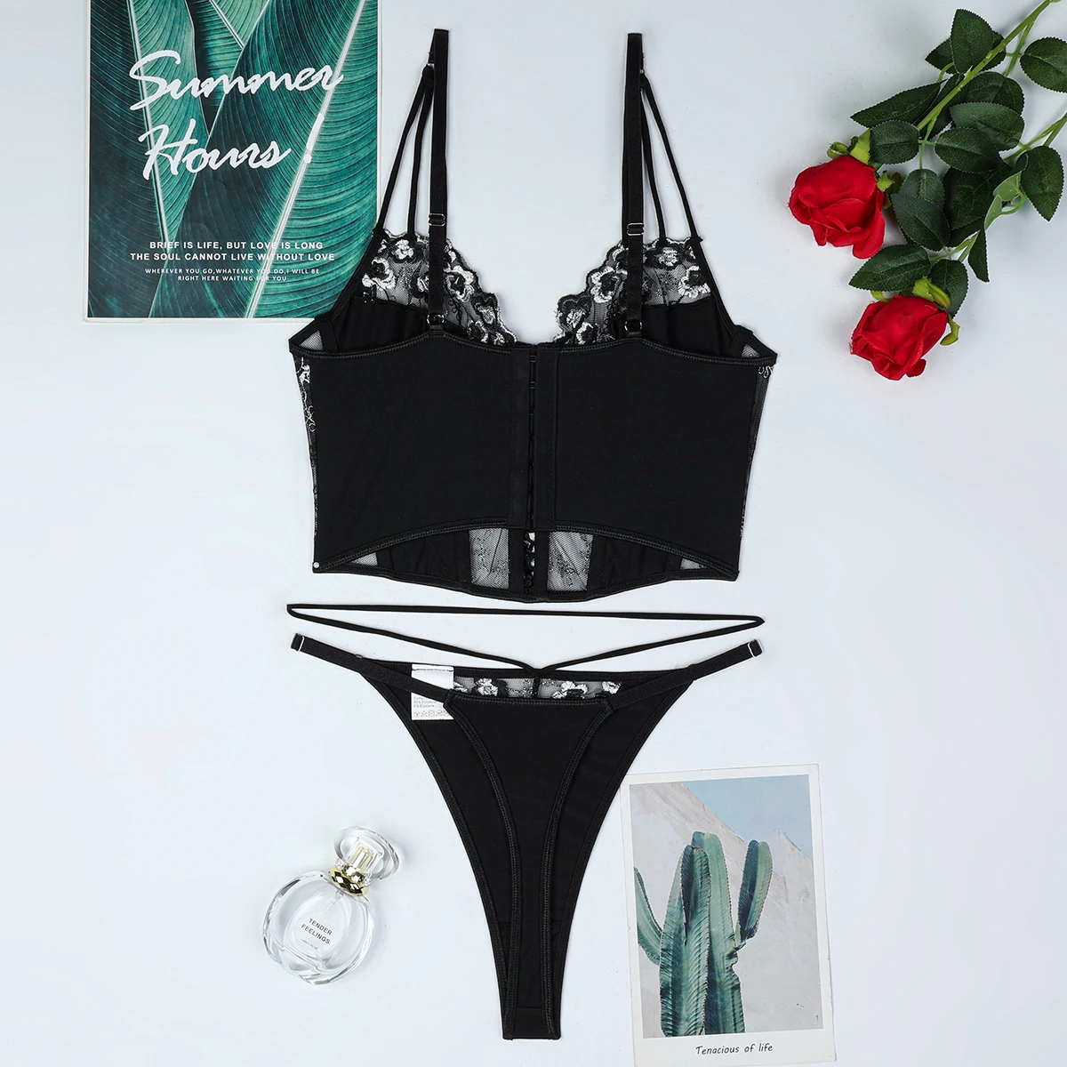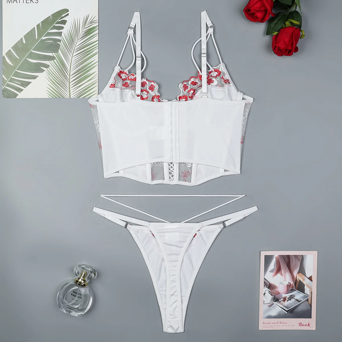 Diccvicc Corset Top Lingerie Two Pieces Embroidery Bra Panty Set Sexy Underwear Elegant Woman Fancy Lady Clothes Exotic Apparel