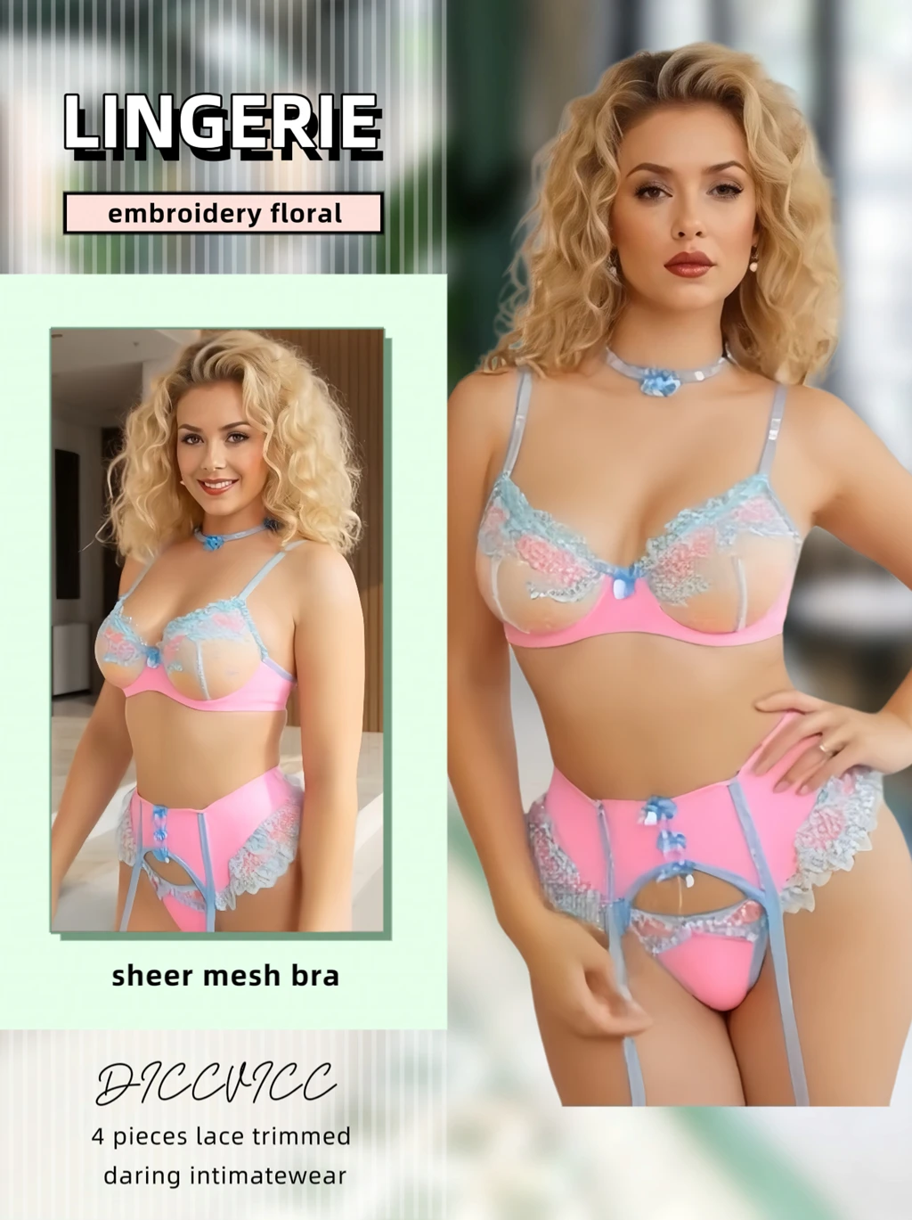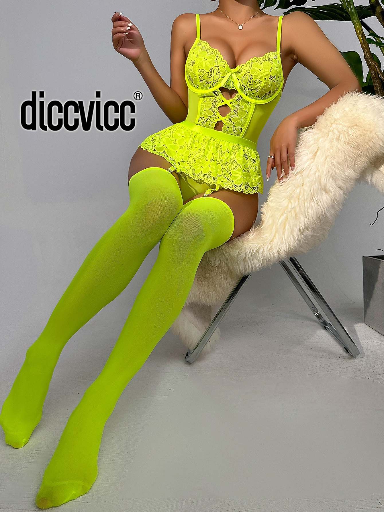 Diccvicc Daring Intimatewear See Through Lace Trimmed Bra Garter Underwear Fine Women Sexy Lingerie Set Babydoll Exotic Outfits