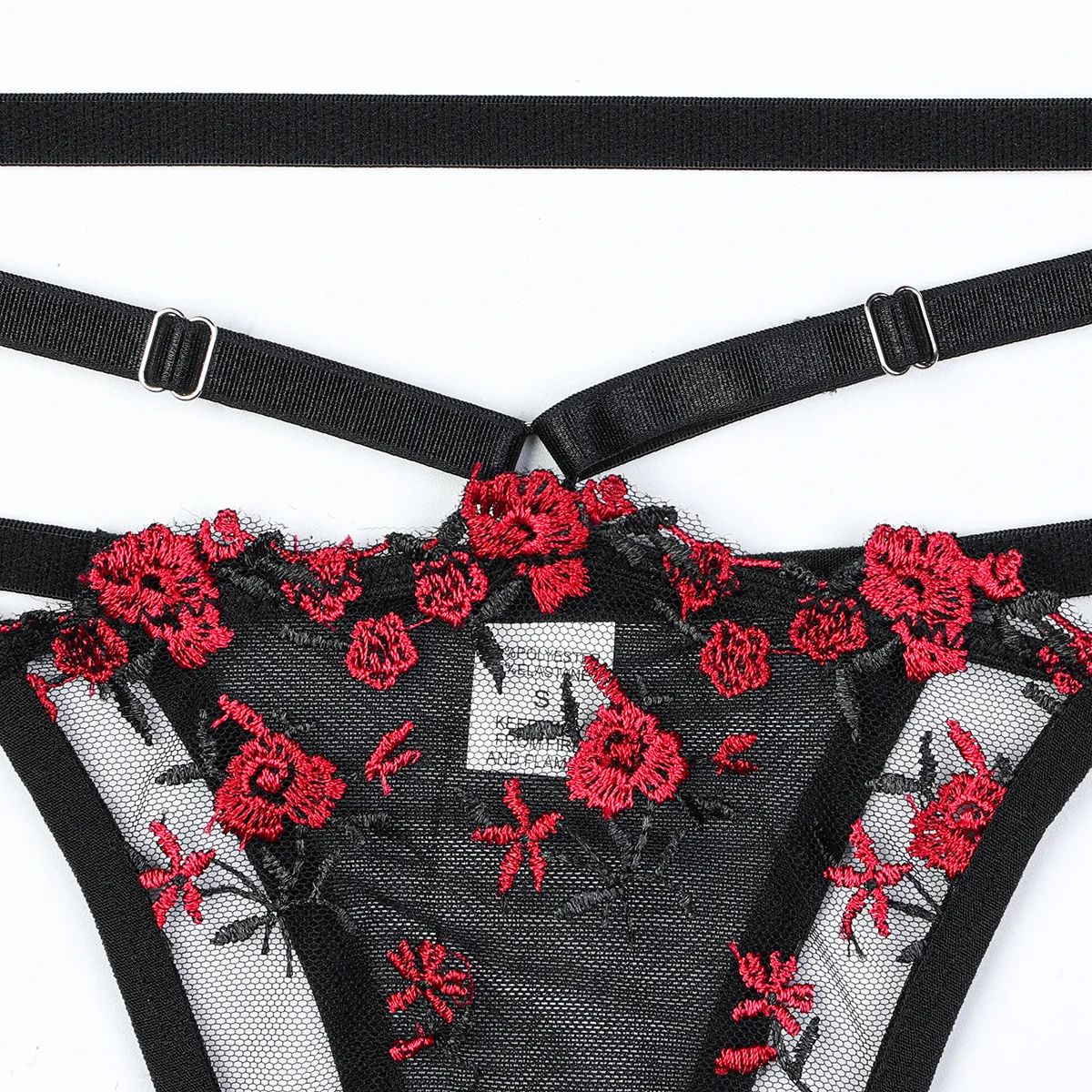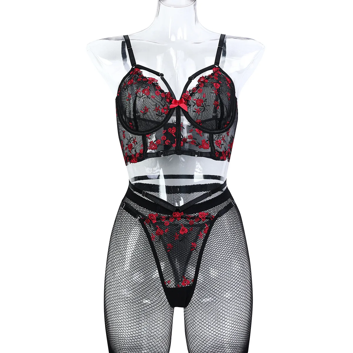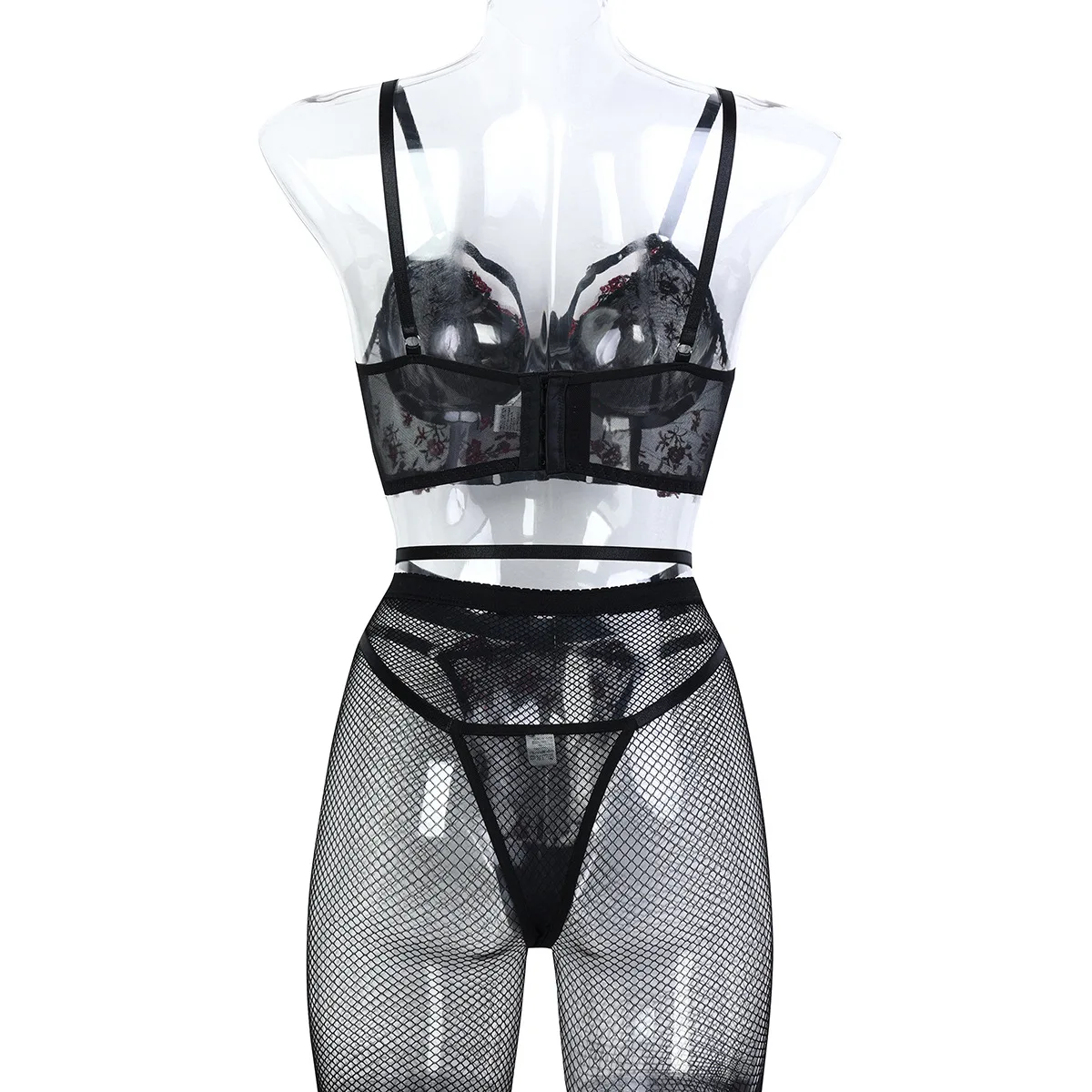 Diccvicc Delicate Floral Lace Lingerie Bandage Corset Top Fancy Panty with Body Stocking Elegant Woman Sexy Underwear Exotic Set
